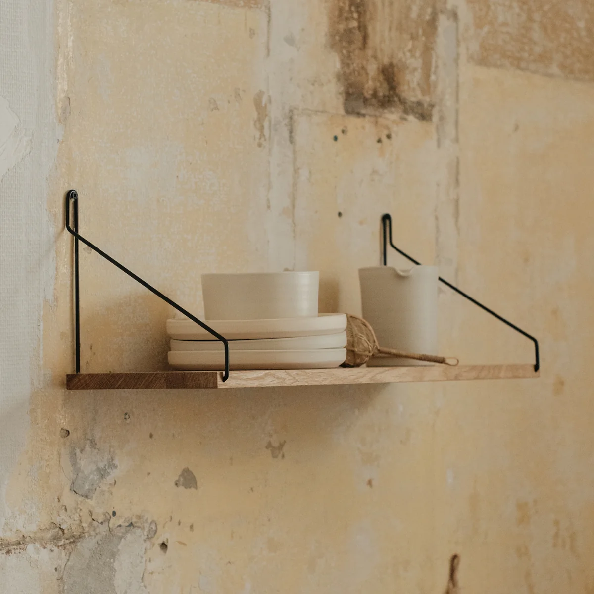 The Shelf wall shelf from Frama is a simple yet ingenious shelf inspired by classic Scandinavian design from the 1950s. Without any superfluous trappings, without any detours via fancy design or frills: The Shelf wall shelf holds what is placed on it. With its universal design, the shelf is suitable for all rooms without exception - be it the hallway, the living room, the bedroom or even the bathroom. Books, decoration, towels, keys, clothes, spices, pots and much more can be placed on the minimalist piece of furniture. It can be optimally combined with other shelves.