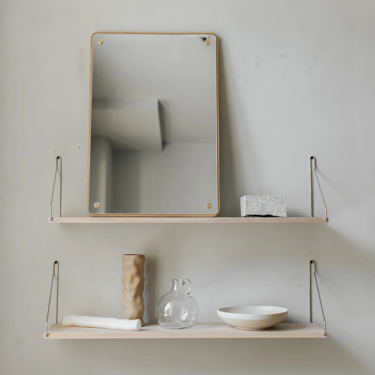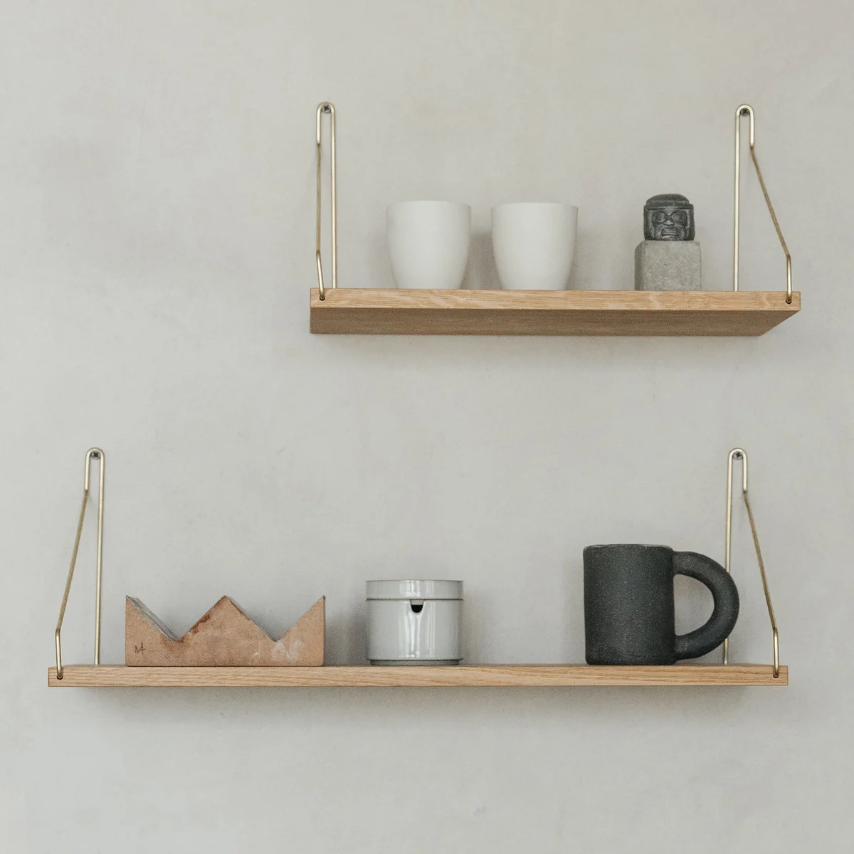 The Shelf shelf is attached to the wall using two brackets. These are made of steel or brass, depending on the version. The shelf is designed for a maximum load of 25 kg. Available in different sizes.