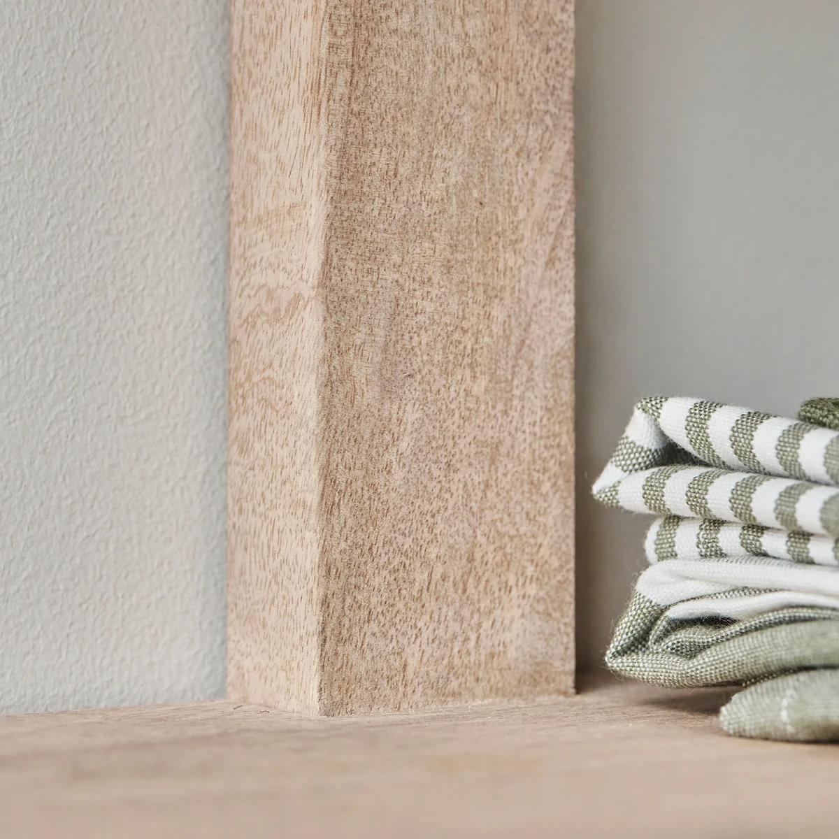 Present your furnishings in a practical and modern way with the open shelves from House Doctor . This design consists of three shelves made of mango wood. The timeless design harmoniously combines functionality and minimalism. Above all, it offers a wonderful solution for any home, as it provides ample space for candle holders, bowls and books. Whether in the living room, bedroom or kitchen, these shelves allow you to create a personal expression with your favorite pieces. Available in a natural or black finish, they offer a versatile addition to any interior.