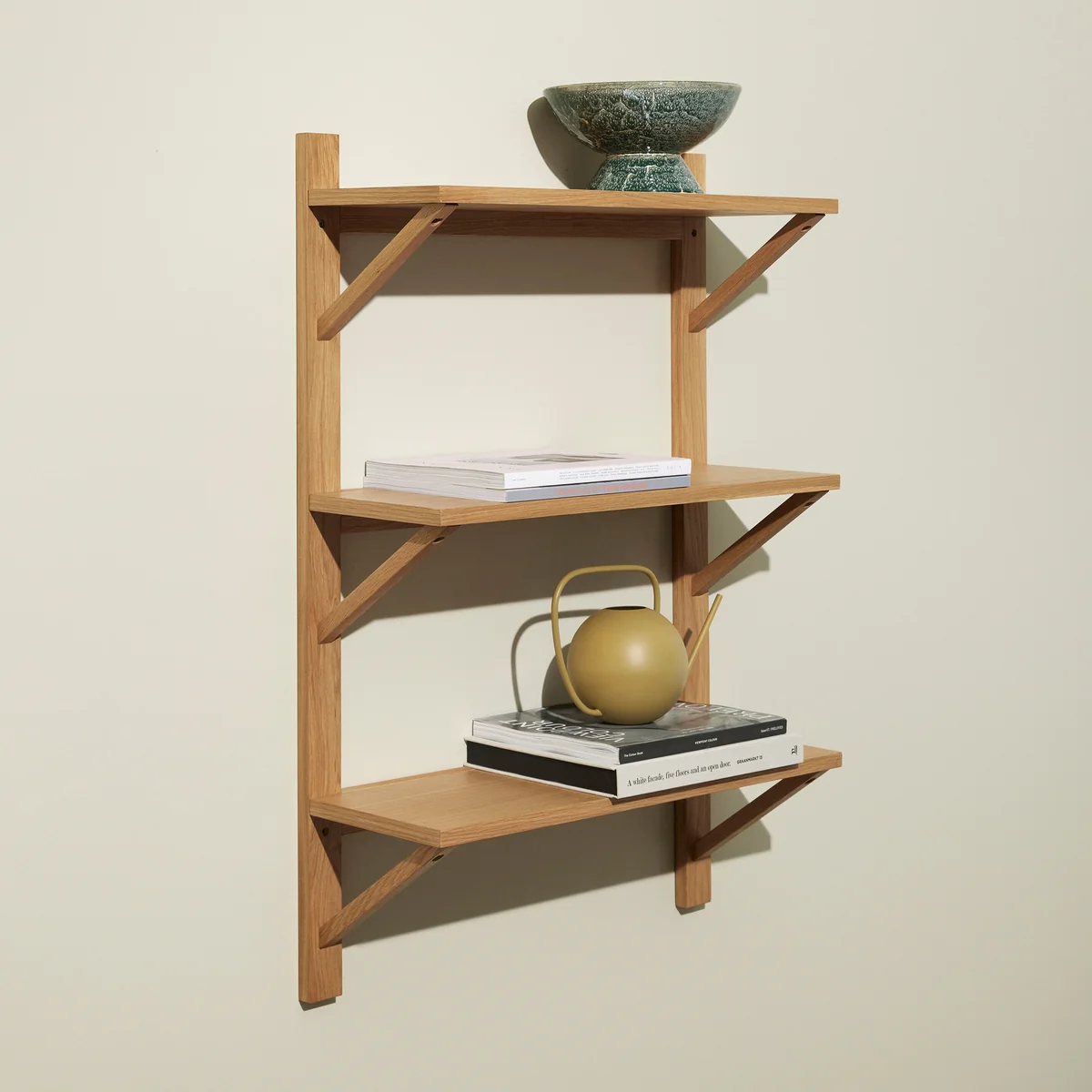 The Triarch shelf offers a stylish way to present books and favorite objects in an appealing way. The three differently arranged shelves create a graphic effect and make the shelf a decorative highlight in any room. Whether in the living room, study or hallway - the clear design language lends structure and elegance to modern living areas.