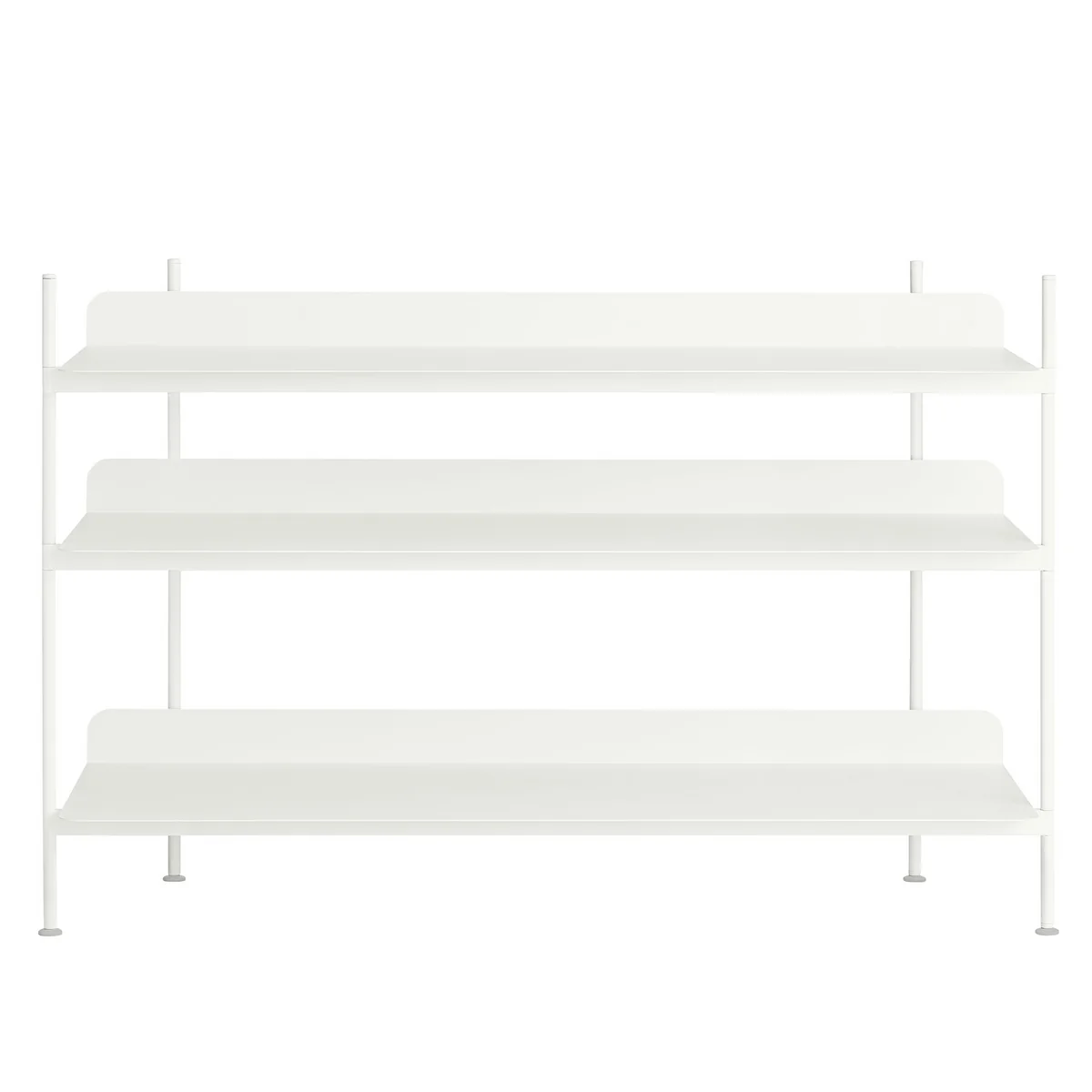 The Compile is the modern version of the classic shelving system. One shelf level consists of one shelf board and two tube constructions, which are available in three different heights. This way you can determine for each level individually, how much distance there has to be to the next shelf.