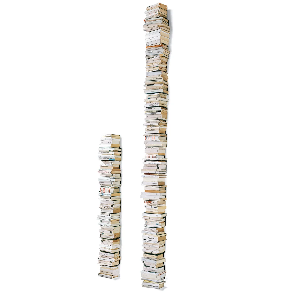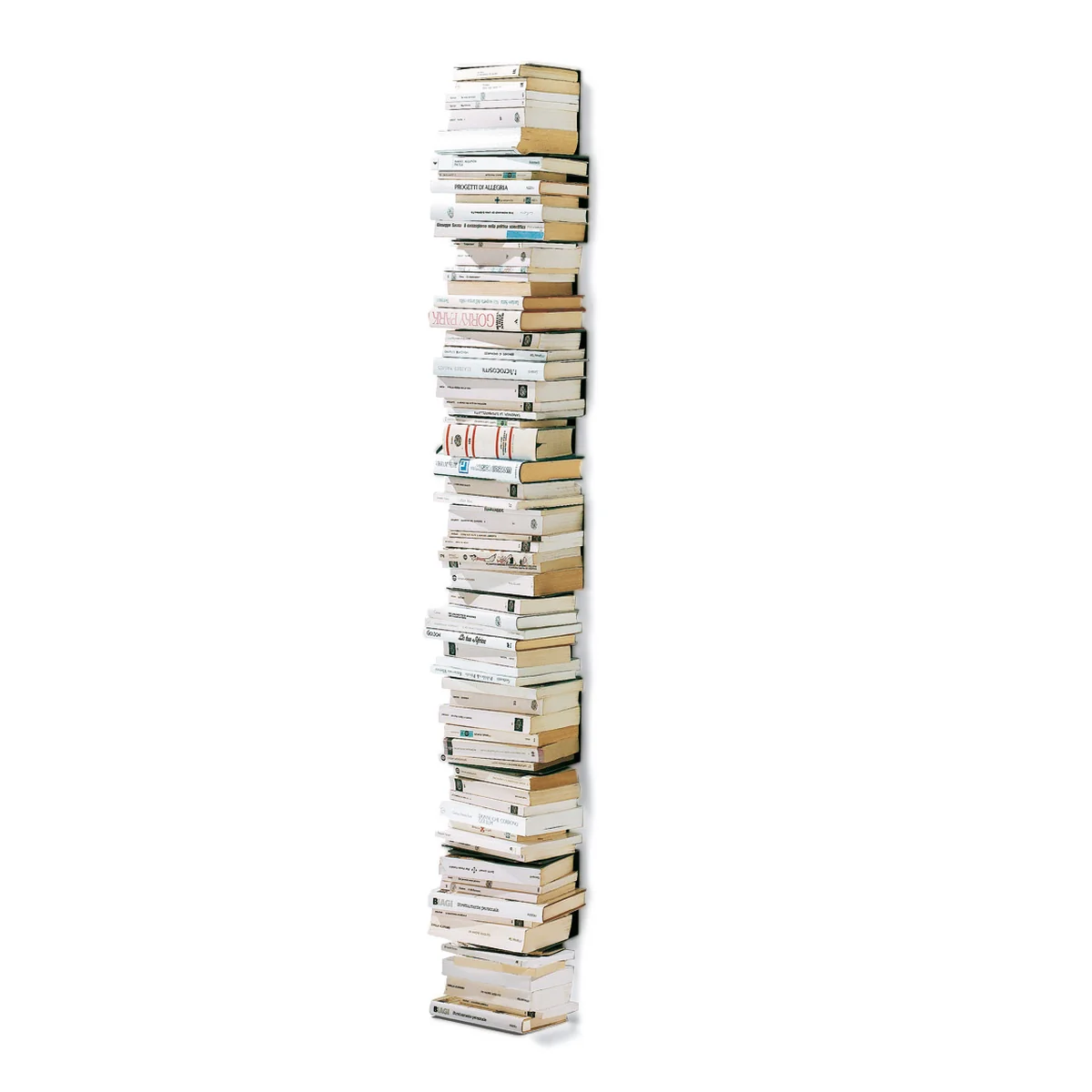 The decently shaped shelf hides behind the sorted books and places your literature collection in the centre of attention. The design of the Ptolomeo wall-bookshelf by Bruno Rainaldi suits the most different interior furnishings and offers an attractive as well as exciting storage possibility. Depending on the height, 35 to 90 books have space in the reservedly designed shelf.