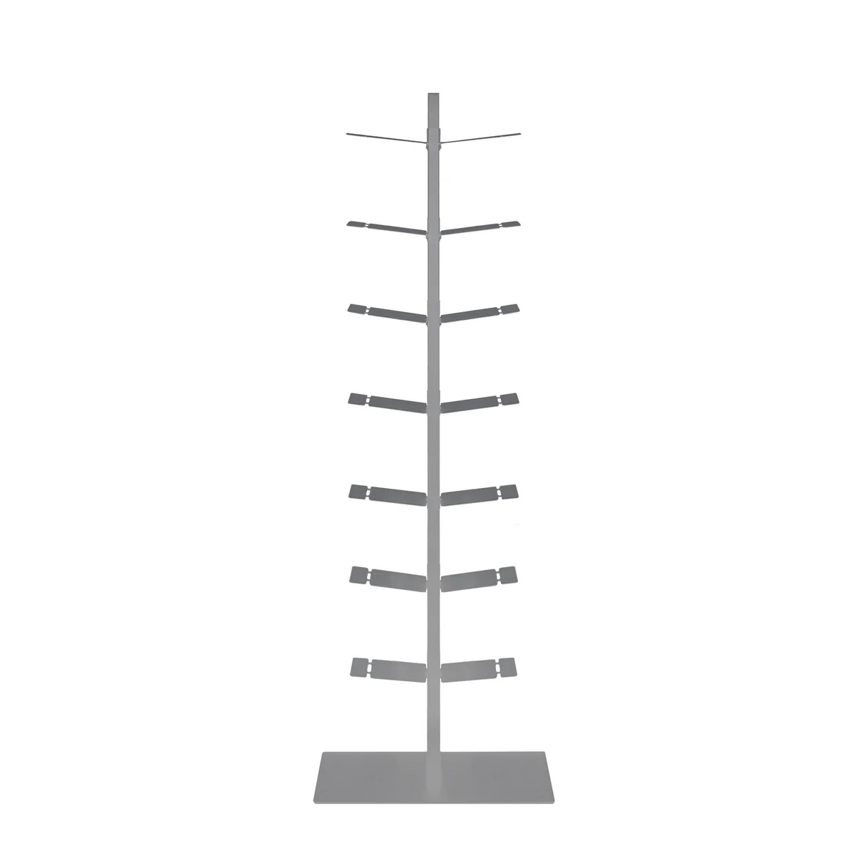 DVDs or CDs can also find their place in the book tree and thus act as a decorative element in the room. Thanks to the wide, flat foot finds the Booksbaum stable hold and can convince with its reduced design. Responsible for the design of the extravagant bookcase is the designer Michael Rösing. Manufactured is the Booksbaum made of powder-coated steel.