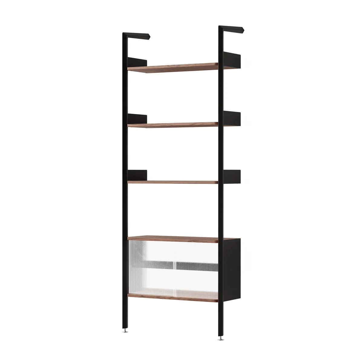 The Rombe IF3 shelf with cupboard element from & Tradition extends the modular Rombe system with an elegant solution for additional storage space. In addition to open shelving surfaces, it offers a cabinet module with finely ribbed glass doors that adds a tactile and visual dimension. Items can be stylishly and discreetly stored behind the doors, while the open structure provides sufficient space for books, decorations or work materials.
