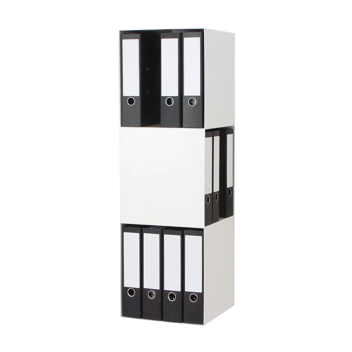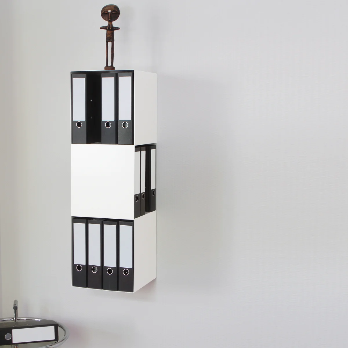 The special feature the Office Box is its middle section: As with all other items in the 2side series by vonbox, the Office Box can be filled from to sides - from the front and the side - whereas the middle section is fitted with folders on the side. Because of this middle section, which is turned by 90 degrees, the shelf looks exceptional all while emanating a certain tranquility, as the simple white surfaces interrupt the rows of folders.