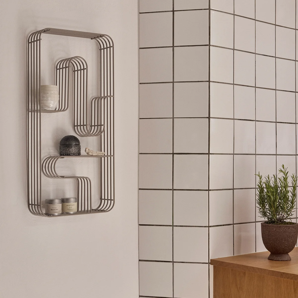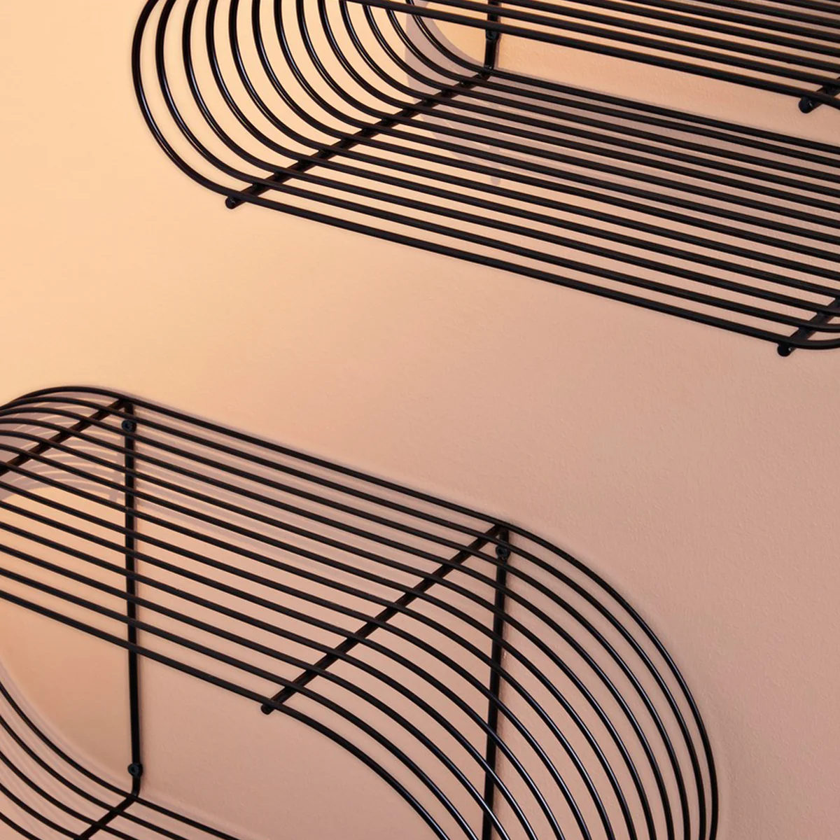 The Curva wall shelf from AYTM is a very special kind of wall decoration. The shelf is made from individual iron rods, which are arranged next to each other in a curved shape and almost form an elliptical shape when viewed from the front. This gives the overall appearance an airy, light touch and fits perfectly into any ambience.