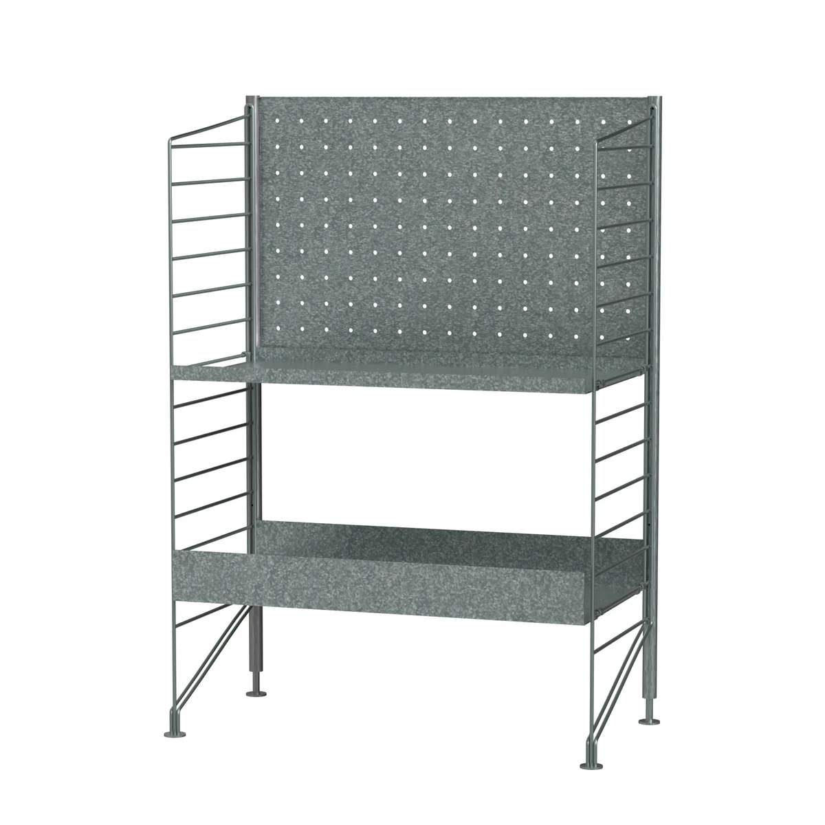 The Outdoor series consists of wall ladders, floor ladders and metal shelves in various sizes and widths. All are made of galvanized steel. The galvanized metal can withstand any weather and gives the String system a robust appearance.
