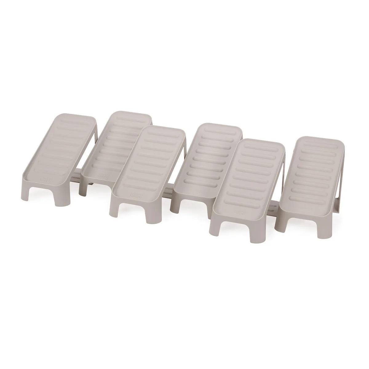 The Shoe-in Single shoe rack from Joseph Joseph enables space-saving storage of flat shoes without them damaging each other. Thanks to the clever, multi-level design, two pairs of shoes can be stacked safely and neatly on top of each other. The fold-up top level ensures easy access to both pairs of shoes, while the ribbed surface prevents the shoes from slipping. Ideal for use in cupboards, hallways or checkrooms - the shelf fits easily into any interior.