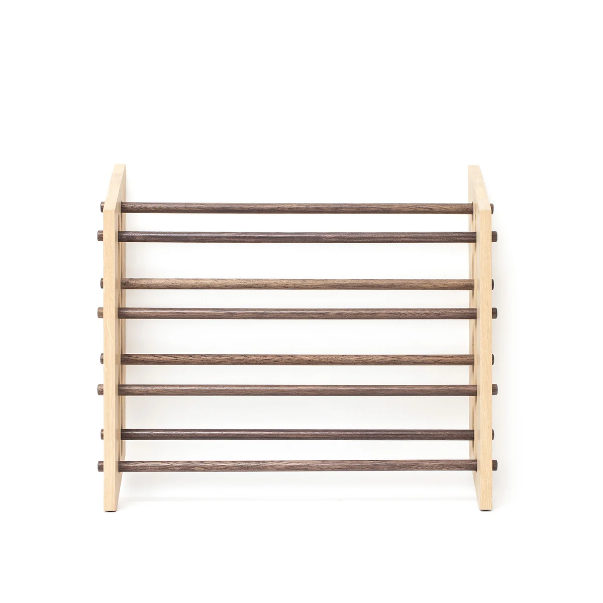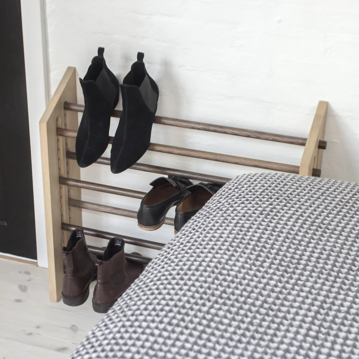 The Roon & Rahn Moodstand Shoe rack from We Do Wood is a variable piece that provides order in the hallway. It can be perfectly adapted to individual needs, in which the shelf rods are placed as desired. Thus, the shelf is perfect for everyday use and can be combined in many ways. Mounted on the wall or on the floor, the shoe rack forms an attractive eye-catcher, which proves itself due to its functionality. The Roon & Rahn Moodstand Shoe rack from We Do Wood is available in different sizes and colors.