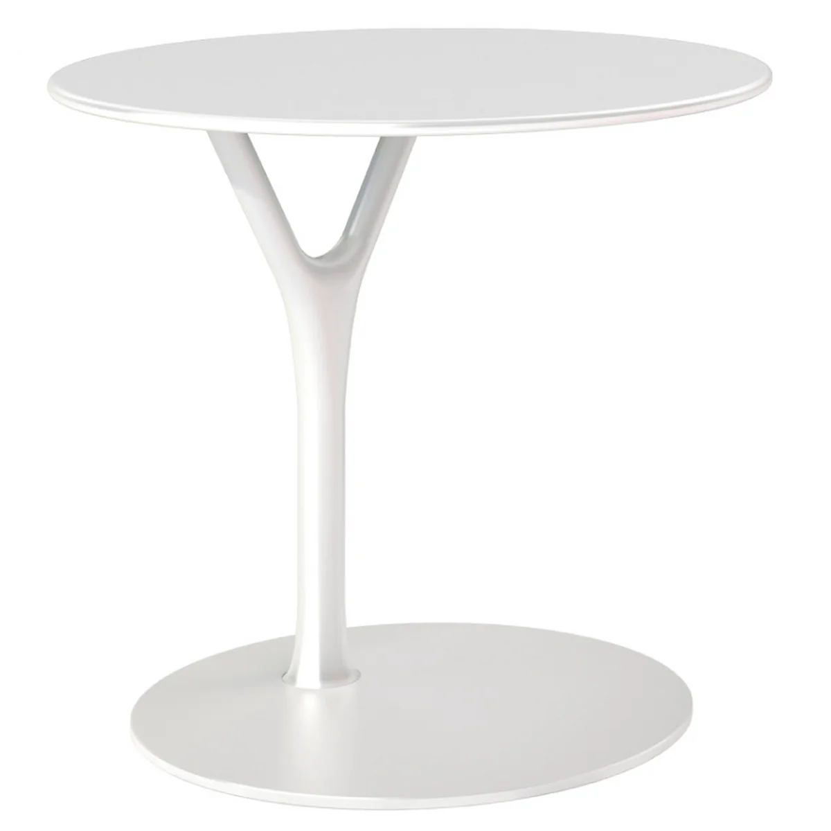 The table top is made out of aluminium; the foot and tube are powder-coated. Frost offers the table in two heights 45 or 65 cm. The diameter is 45 cm for the table top and 35 cm for the foot.