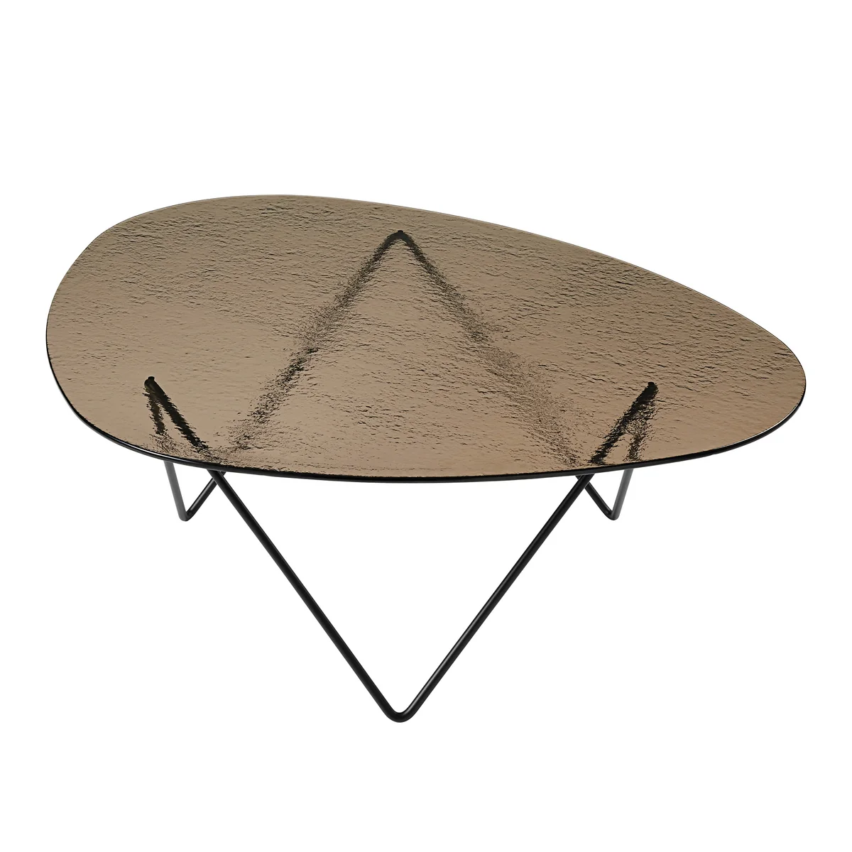 Thanks to the broad-based Pedrera project, Barba Corsini gained international recognition at the time and the furniture advanced to become design classics. The Pedrera side table is made by Gubi with a metal base and has an organically shaped glass top.