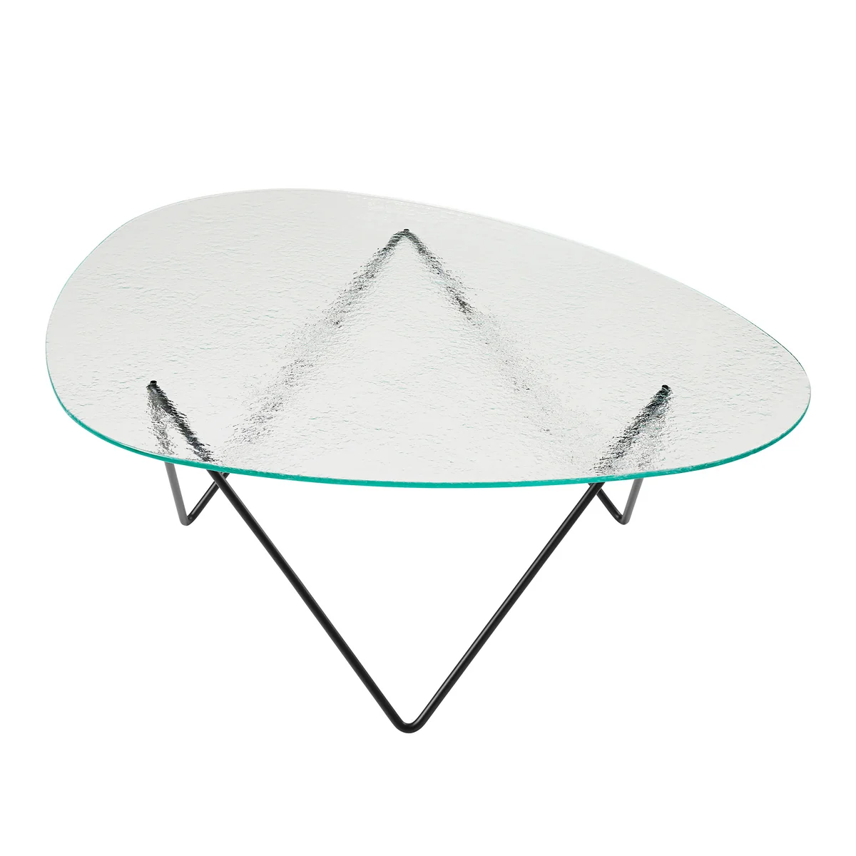 Thanks to the broad-based Pedrera project, Barba Corsini gained international recognition at the time and the furniture advanced to become design classics. The Pedrera side table is made by Gubi with a metal base and has an organically shaped glass top.