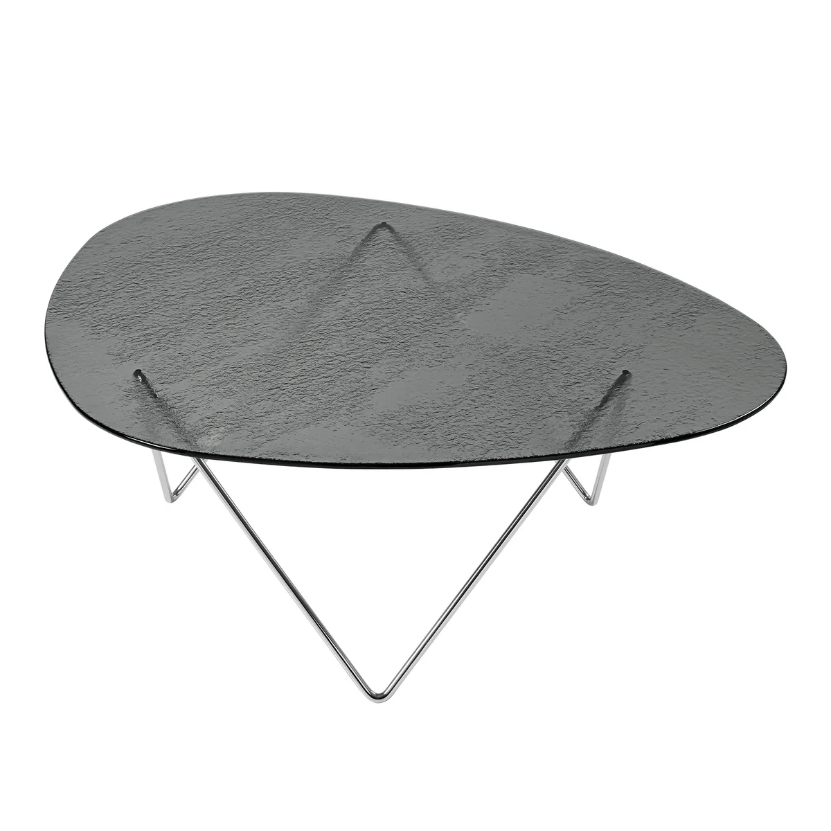 Thanks to the broad-based Pedrera project, Barba Corsini gained international recognition at the time and the furniture advanced to become design classics. The Pedrera side table is made by Gubi with a metal base and has an organically shaped glass top.