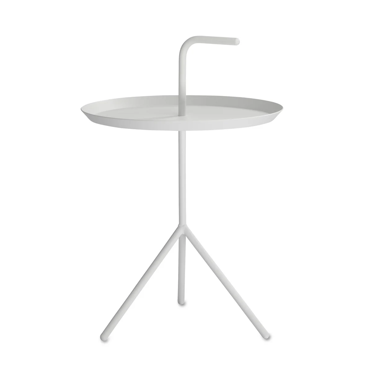 The Danish designer's clear, straightforward understanding of design speaks from the design. No part is too much about DLM - and none too little: the three feet of the steel frame give it a firm hold. The plate, which is also made of steel, provides sufficient space to place the essentials on it. And the handle, curved like a walking stick, once again clearly expresses the idea of the design table: Take me with you! Whether to the sofa, beside the lounge chair or the bed, DLM is the perfect alternative to the otherwise so heavy and immovable side tables.