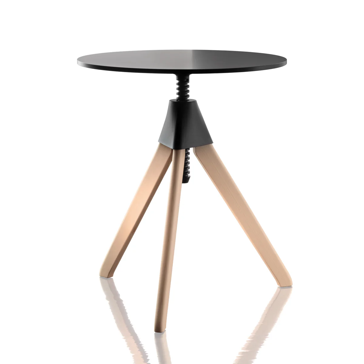 The Topsy side table by Magis is height-adjustable between 64.5 and 80.5 cm thanks to the intelligent construction and the industrial-like screw thread.