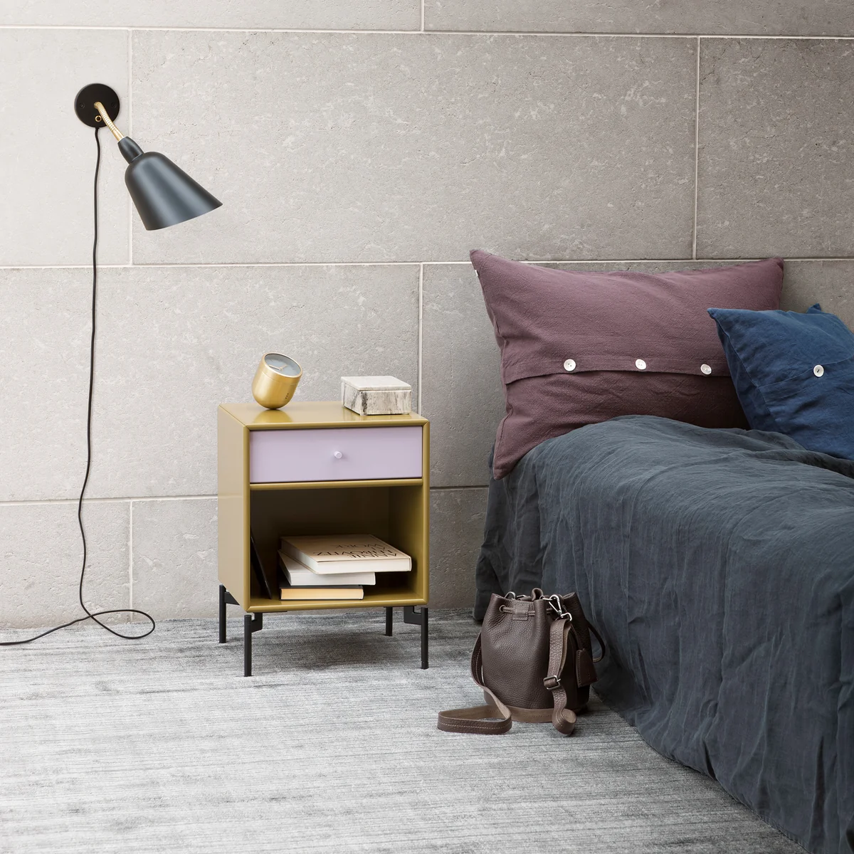 Dream by Montana is a bedside table with drawer and shelf designed by Peter J. Lassen. The small side table makes itself great next to the bed. In the drawer, on the shelf and in the compartment, books, the water bottle, a reading lamp, glasses, alarm clock and Co. find a nice place.