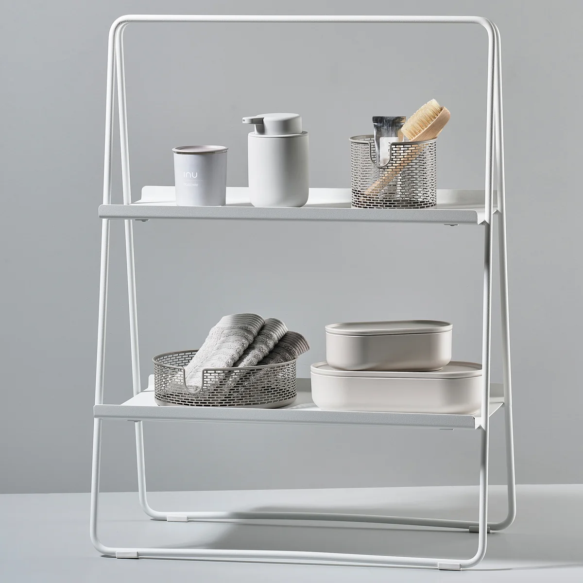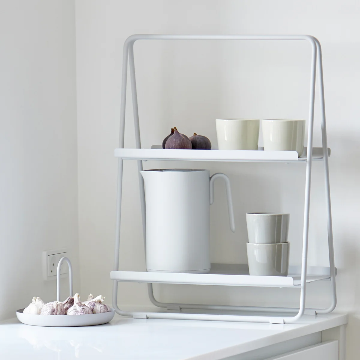 The A-Table from Zone Denmark is a successful mixture of side table and shelf. Its A-shaped silhouette makes it a special piece of furniture that can be used in many ways. In the bathroom, for example, towels and cosmetics can be placed on the two levels, in the study it serves as a bookshelf and in the living room it can be used as a shelf. A-Table serves as a bookshelf in the study and in the living room it can be used as a bar to stylishly display fine bottles and glasses. It can also be used as a bedside table in the bedroom A-Table and offers storage space for all kinds of objects.