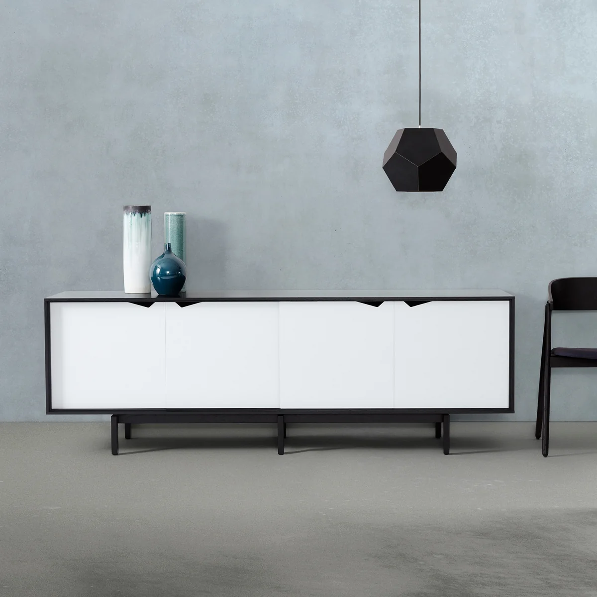 The S1 sideboard with plain doors from Andersen Furniture is a classic chest of drawers in a modern style and was designed byKATO. It offers a lot of storage space and can be flexibly and individually designed to fit the living space and your own taste.