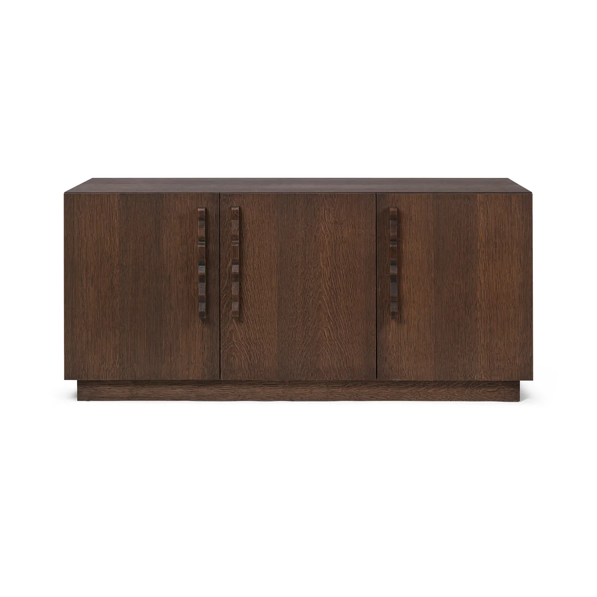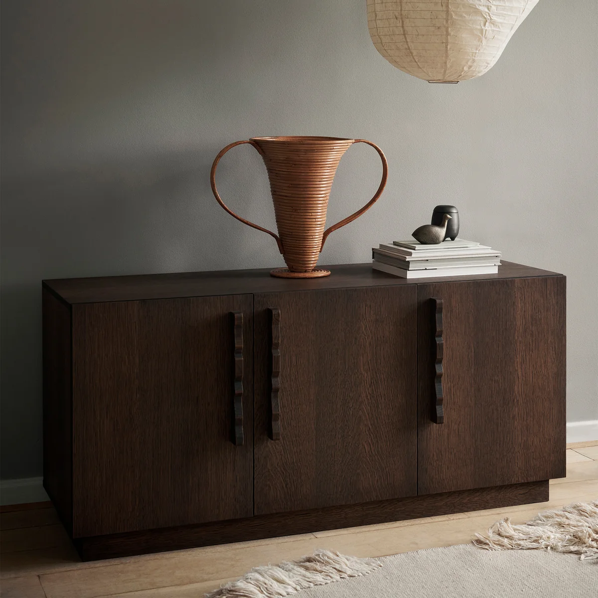 The Unda Sideboard from the Danish house of Ferm Living is a great fusion of rugged and classic aesthetics that contrast with the playful handles. The fantastic interplay between high-level functionality and moody whimsy creates a timeless piece of furniture that will look wonderful in any space. Unda Is made of dark stained FSC™ certified oak.