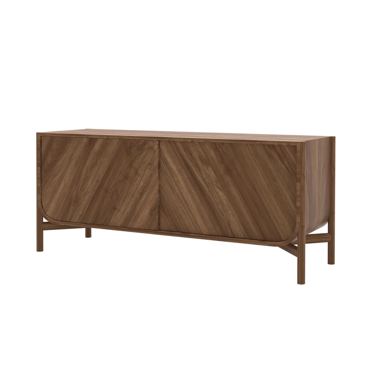 With its rounded curves, the sideboard alludes to the shape of a ship's hull, while the pattern on the two doors is reminiscent of sails. The two sliding doors in the sail pattern conceal two levels on which crockery, books, files and much more can be stored discreetly and discreetly.