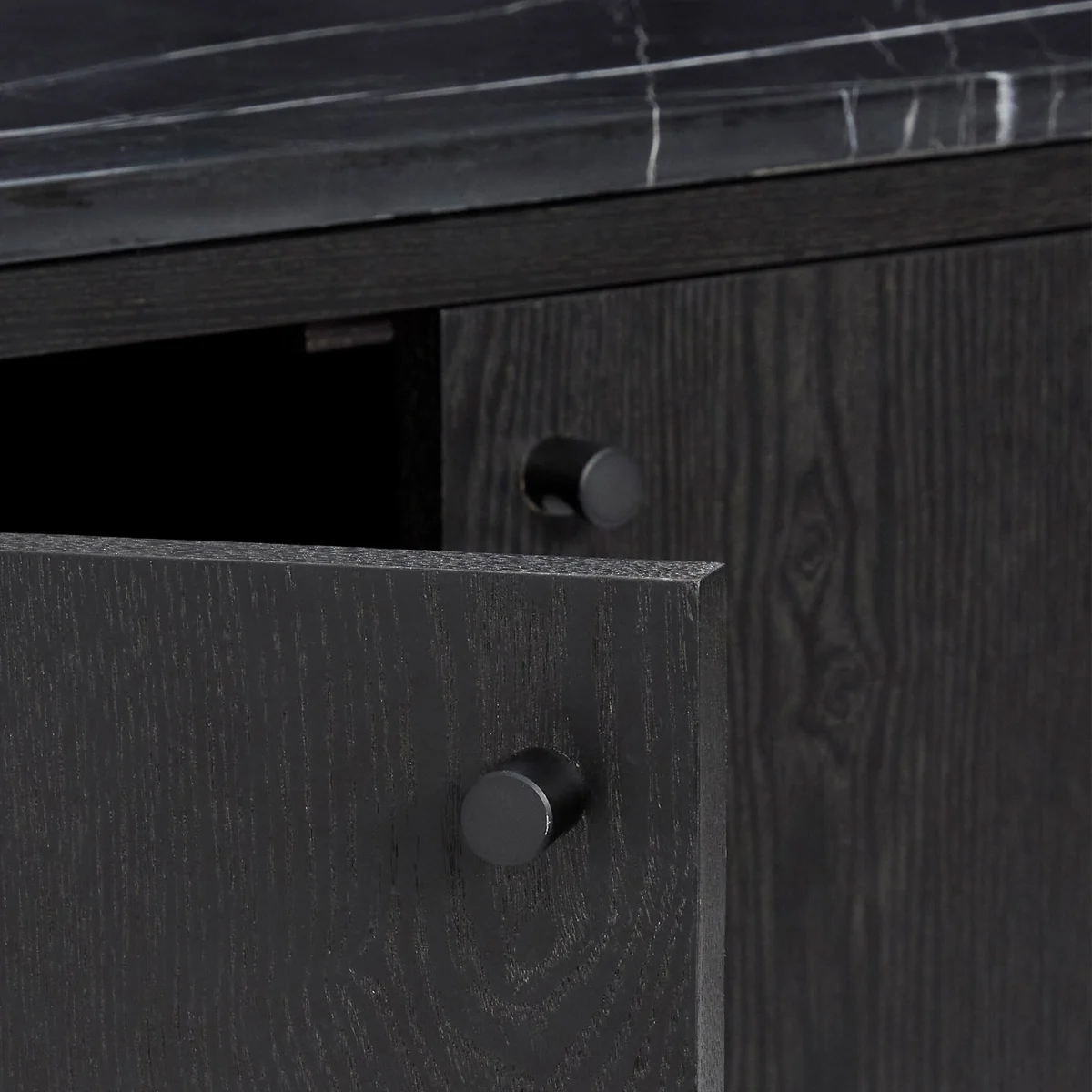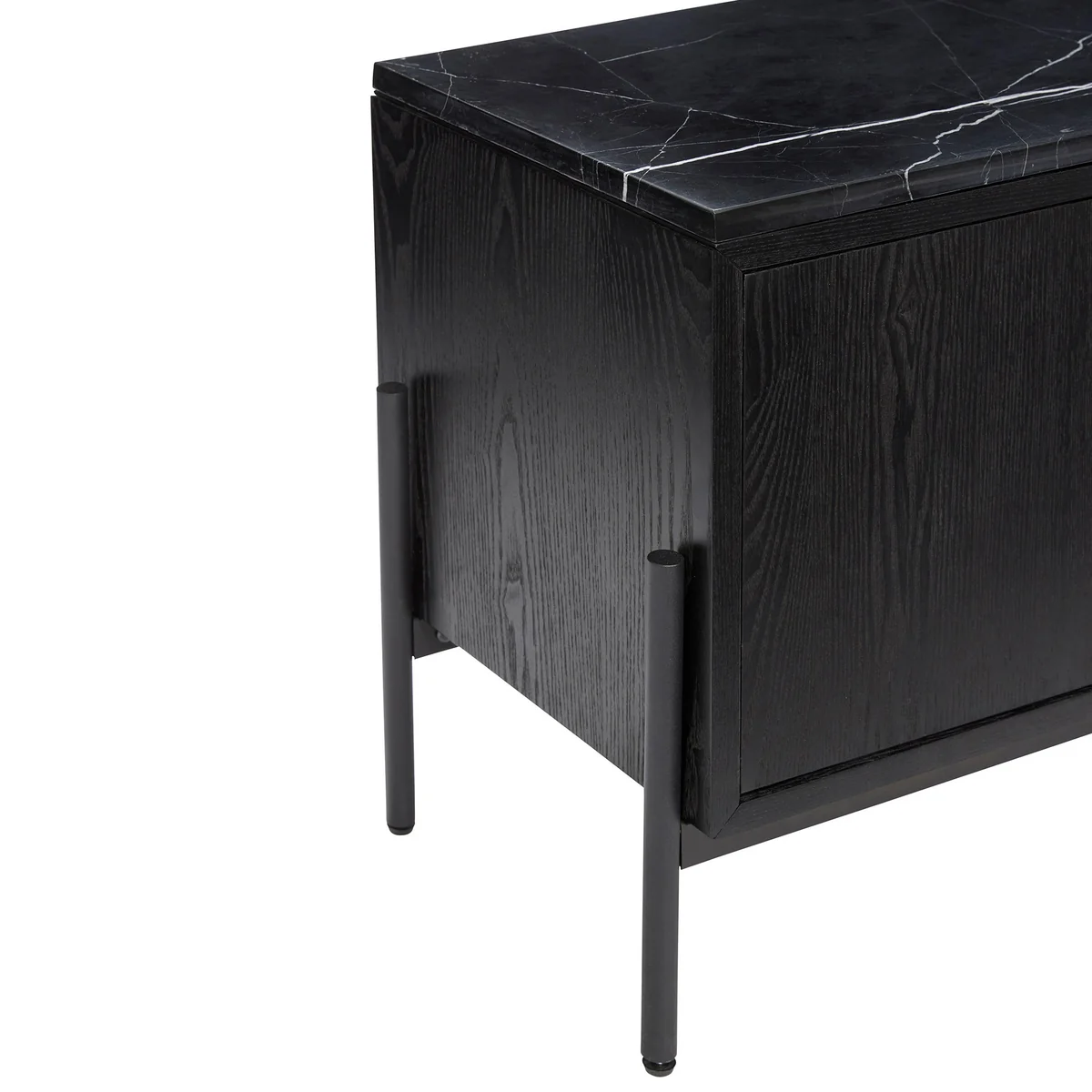 The marble chest of drawers from Hübsch Interior is made of ash wood, a steel frame and a black marble top.