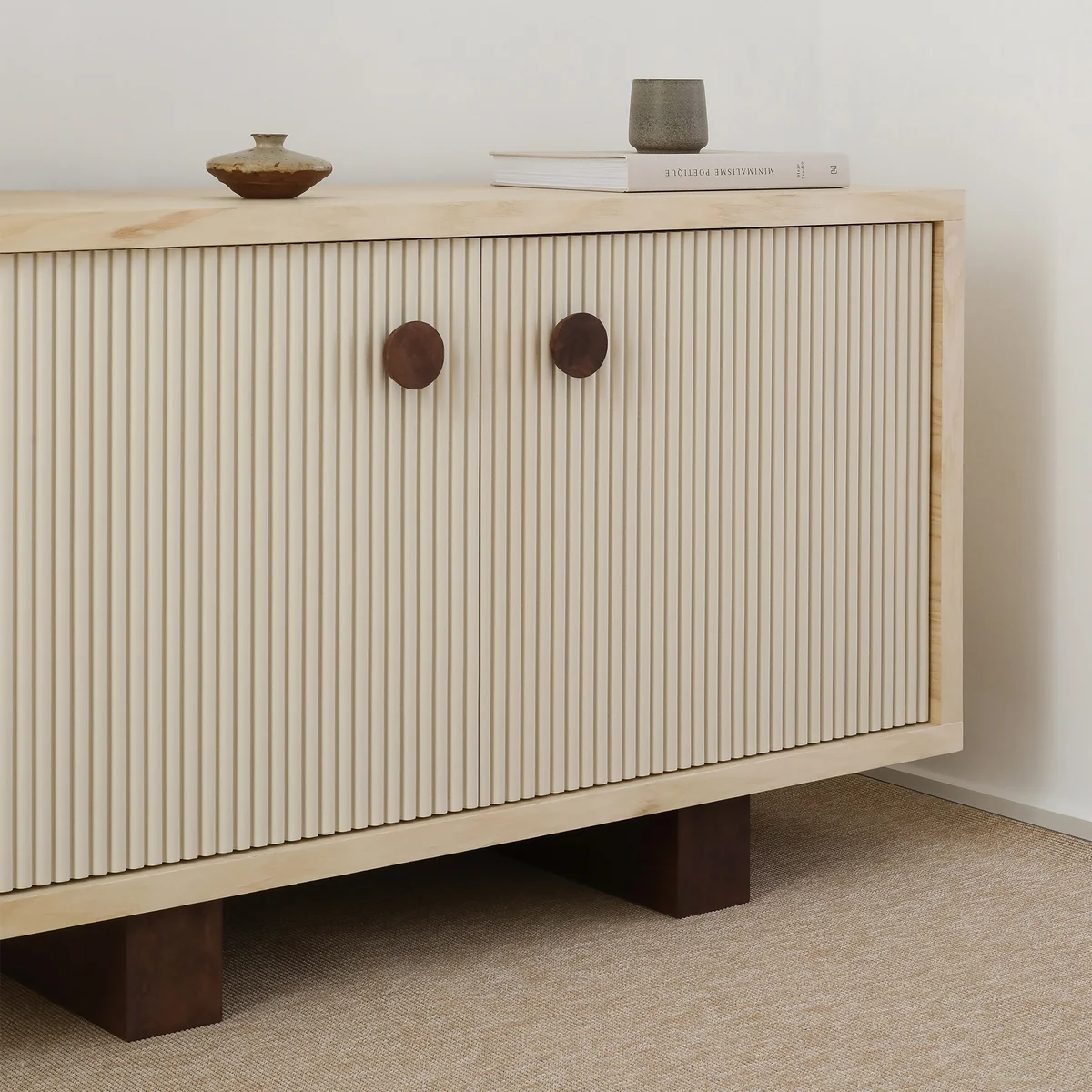 The Heju sideboard from Nobodinoz is a central element of the Heju x Nobodinoz collection - a harmonious combination of minimalist design language and sculptural details. With clear lines, high-quality materials and Japanese-inspired design elements, the sideboard lends any room a calm yet expressive atmosphere.