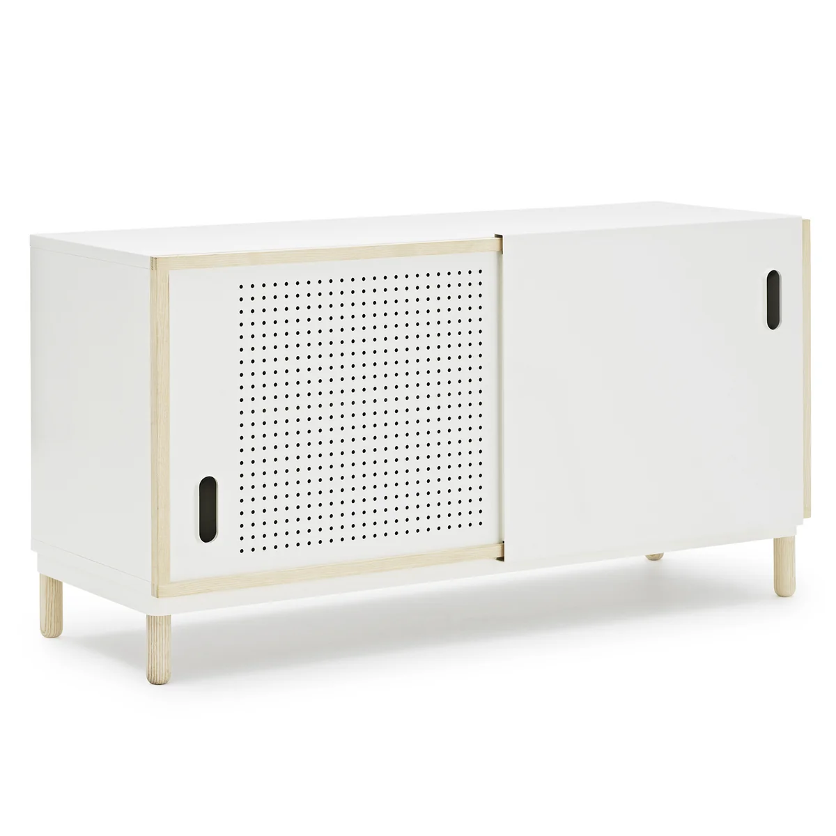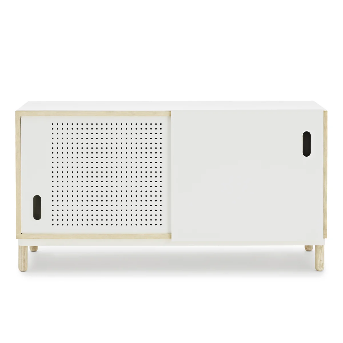 Kabino is a simple, versatile sideboard with an exclusive appearance, designed by Simon Legald. One of two sliding doors has been made as an elegant plate with holes while the sideboard’s ash frame gives it a soft and warm appearance. Kabino fits in with most furnishing styles.