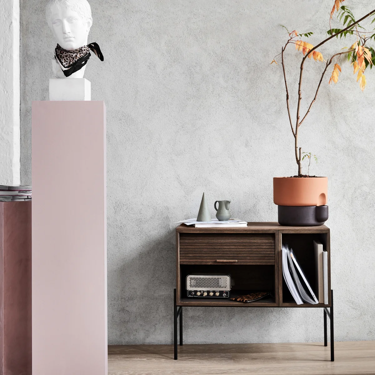 The Hifive Sideboard from Northern is a modern piece of furniture with a special flair, which fits perfectly into any ambience. The furniture system designed by Rudi Wulff consists of modular components that can be arranged individually - depending on your needs: The open units serve the presentation of beloved decorative objects, but also have the appropriate size for records, which can be wonderfully staged here.