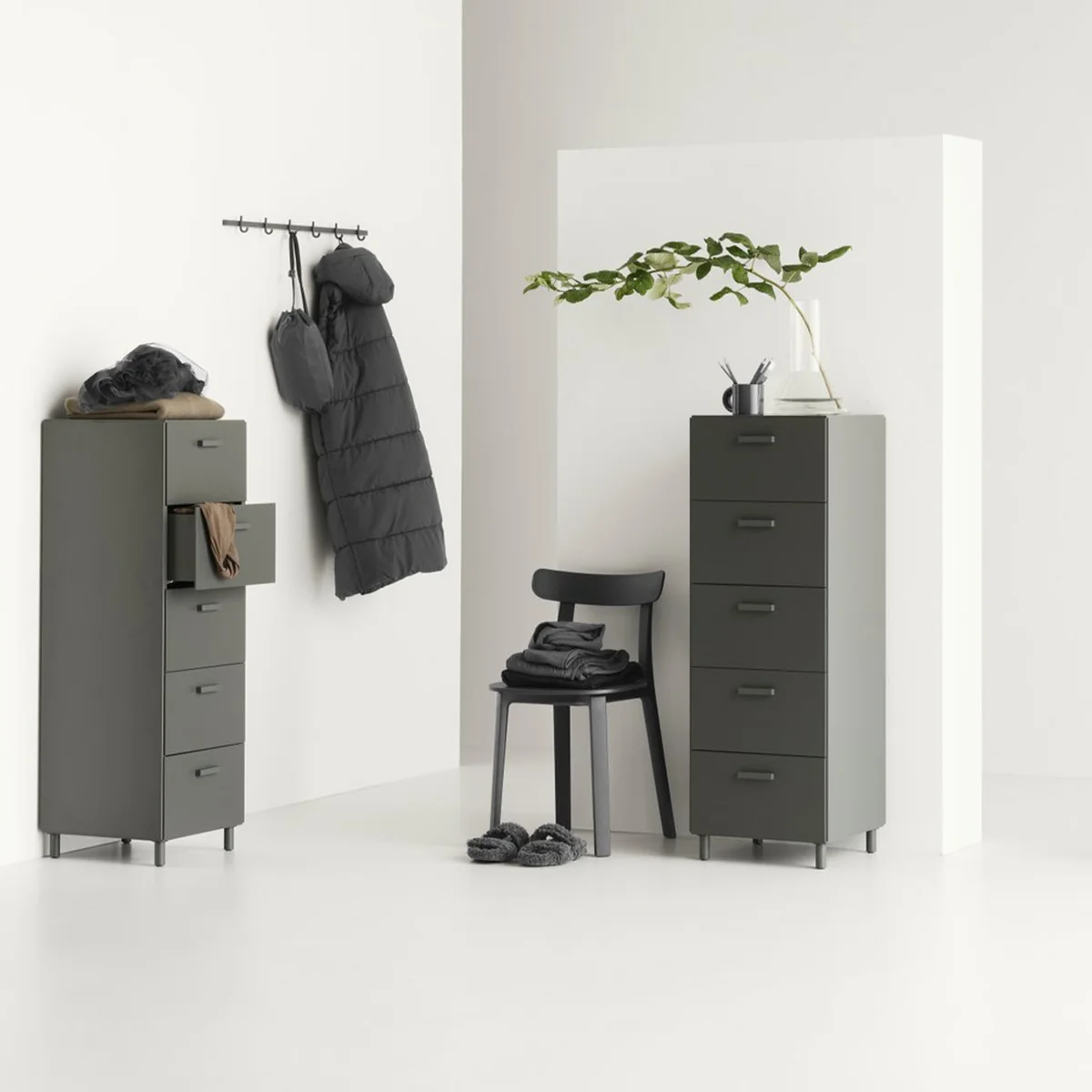 The Relief chest of drawers with legs from String offers a versatile and flexible storage system for any room. The Relief system consists of chests of drawers and hook rails in different sizes and colors that can be connected and individually combined. Every detail, including the back panel, has been designed with the utmost care to create an aesthetically pleasing overall look. Whether used as a single piece of furniture, as part of a larger unit or even as a stylish room divider, the Relief chest of drawers blends seamlessly into any interior while providing practical storage space with a touch of elegance.