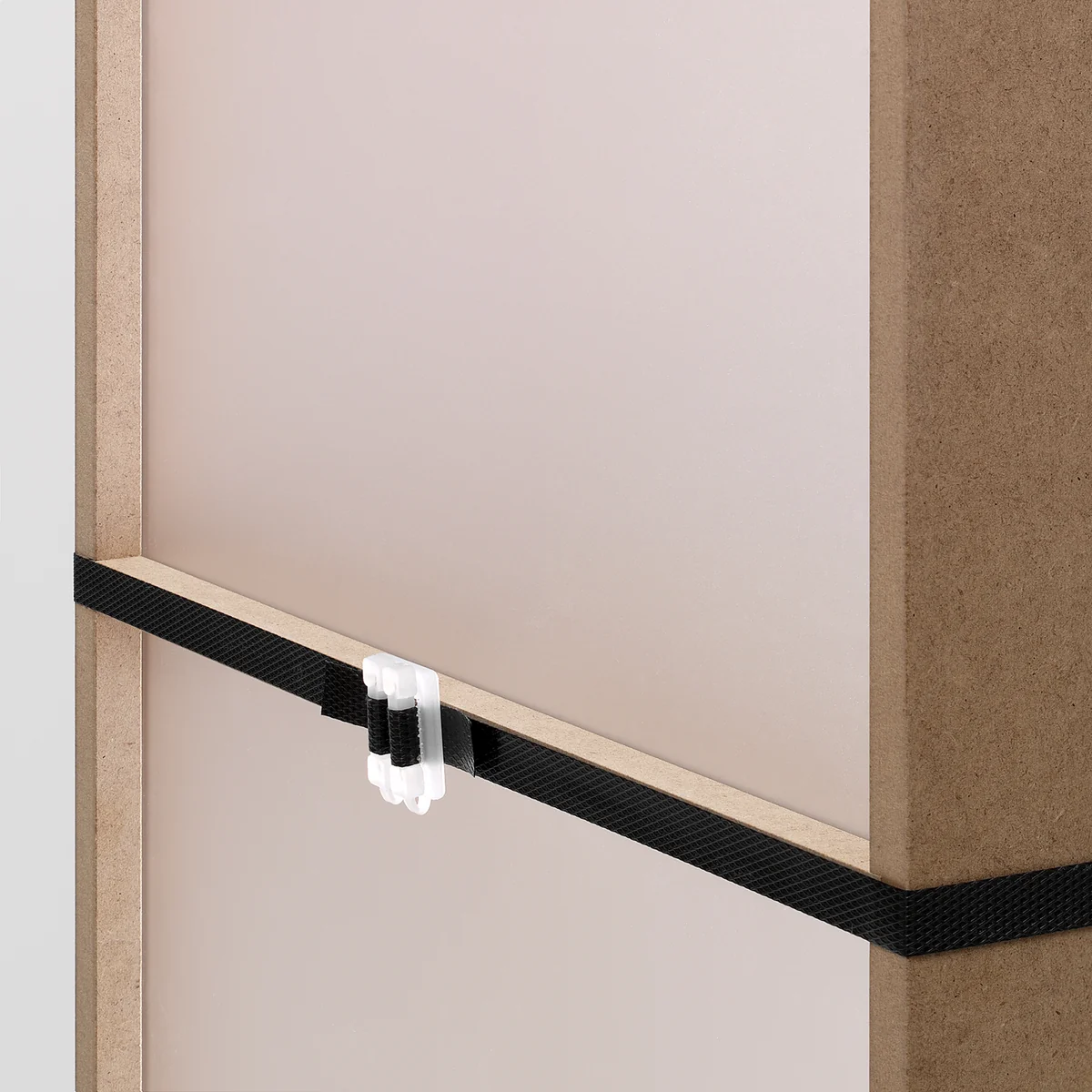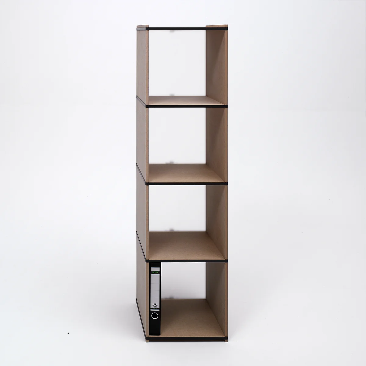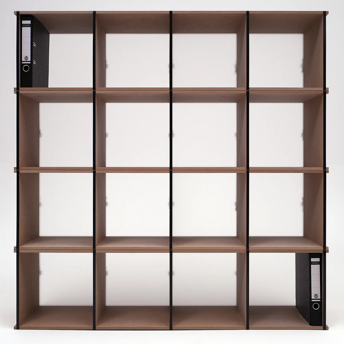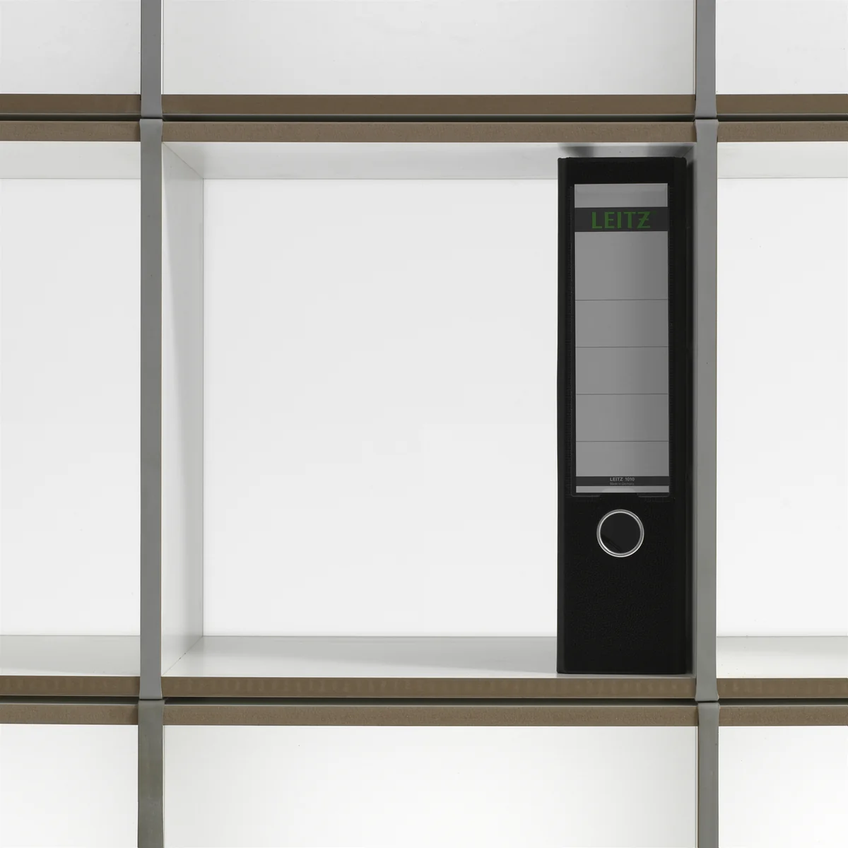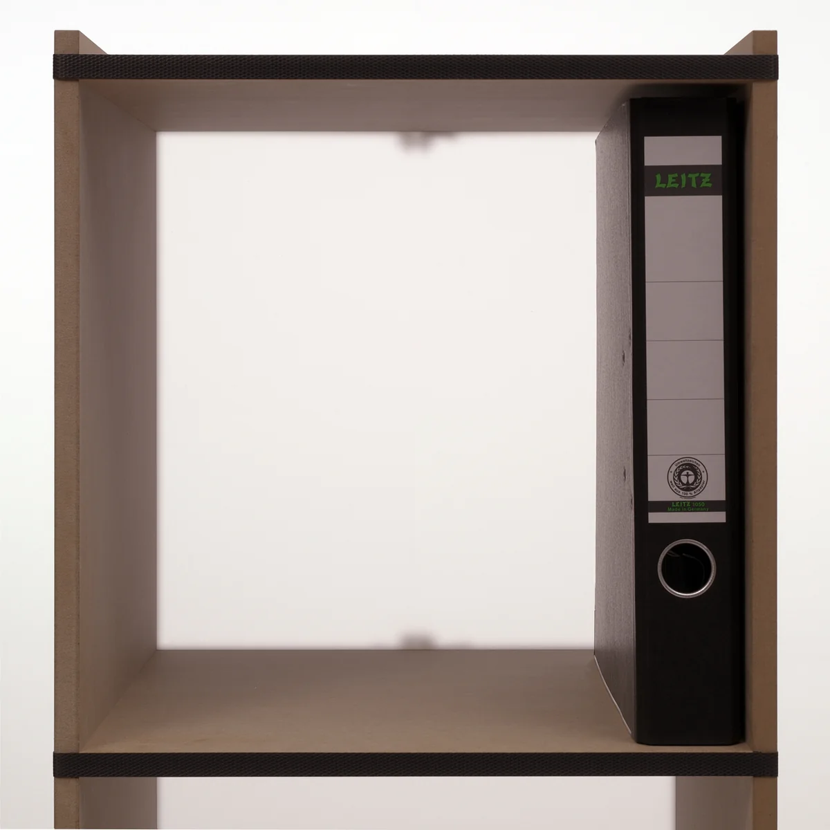The Aktenpack (German for “packing ring binders or folders”) stores your files: the plug-in furniture by Tojo offers lots of space and can simply be extended or reduced in size. The single elements of the Tojo Aktenpack shelf are connected by only 5 circumferential black rubber rings.