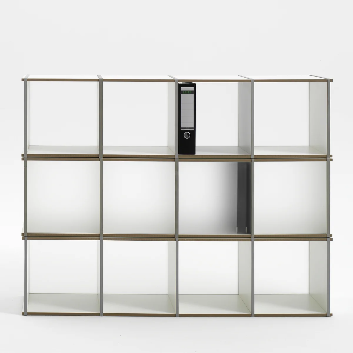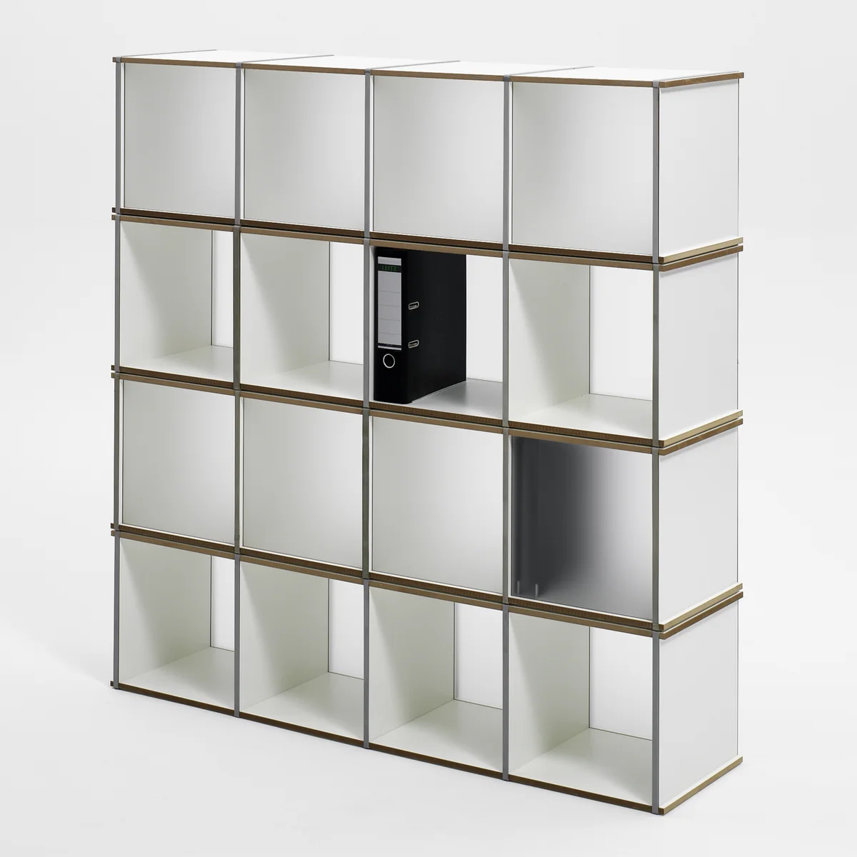 But also in the private living area Aktenpack can be used as cabinet for storage and it fulfils the stylish presentation of books, vases and other accessories. It can be positioned upright standing as well as as lying slim shelf in the hallway, as sideboard or lowboard.