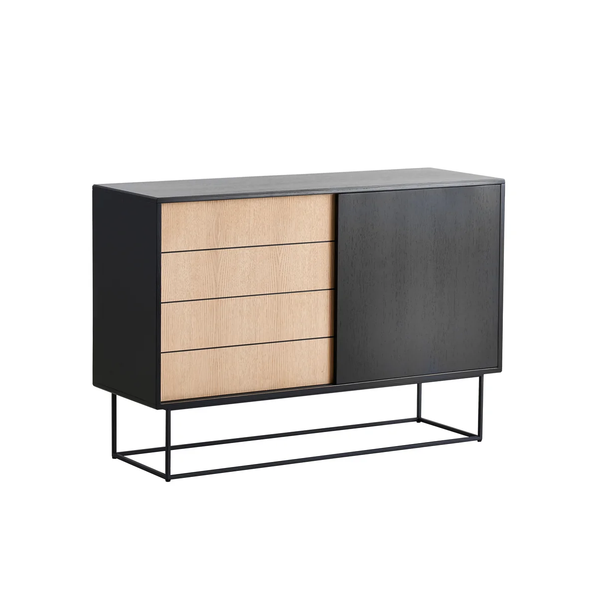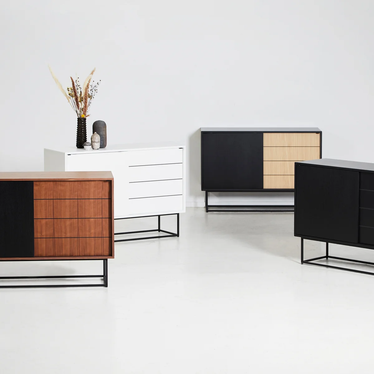 The Virka Sideboard by Woud is an elegant and timeless sideboard with sliding doors, which convinces with clean lines and a simple expression.