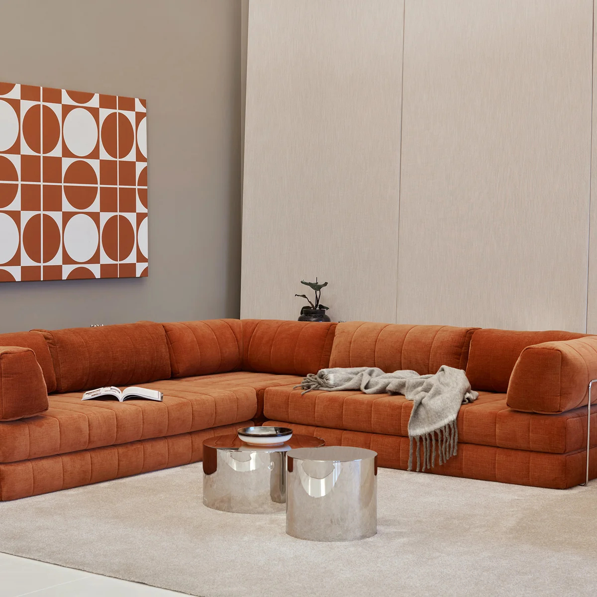 The L-shaped back cushions, which allow a particularly relaxed sitting and reclining position, are a characteristic feature. They create a cozy, enveloping effect and underline the lounge-like character of the sofa. At the same time, the loose cushions can be arranged flexibly and repositioned as required.