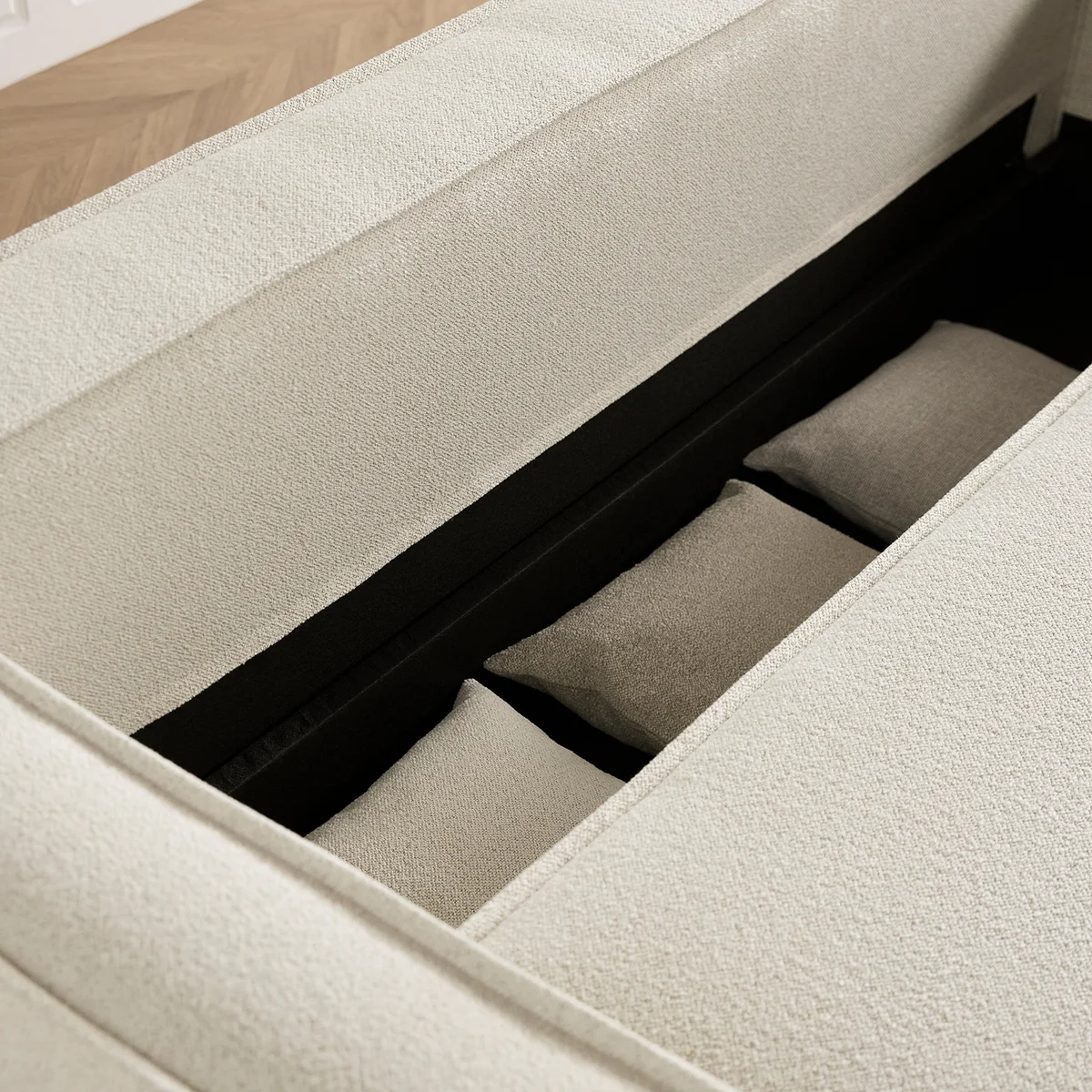 The Newilla sofa bed from Innovation Living was created by designer Per Weiss and combines modern design with well thought-out functionality. With its generous storage space under the seat and lounger, it is ideal for neatly storing blankets, cushions or other everyday items.