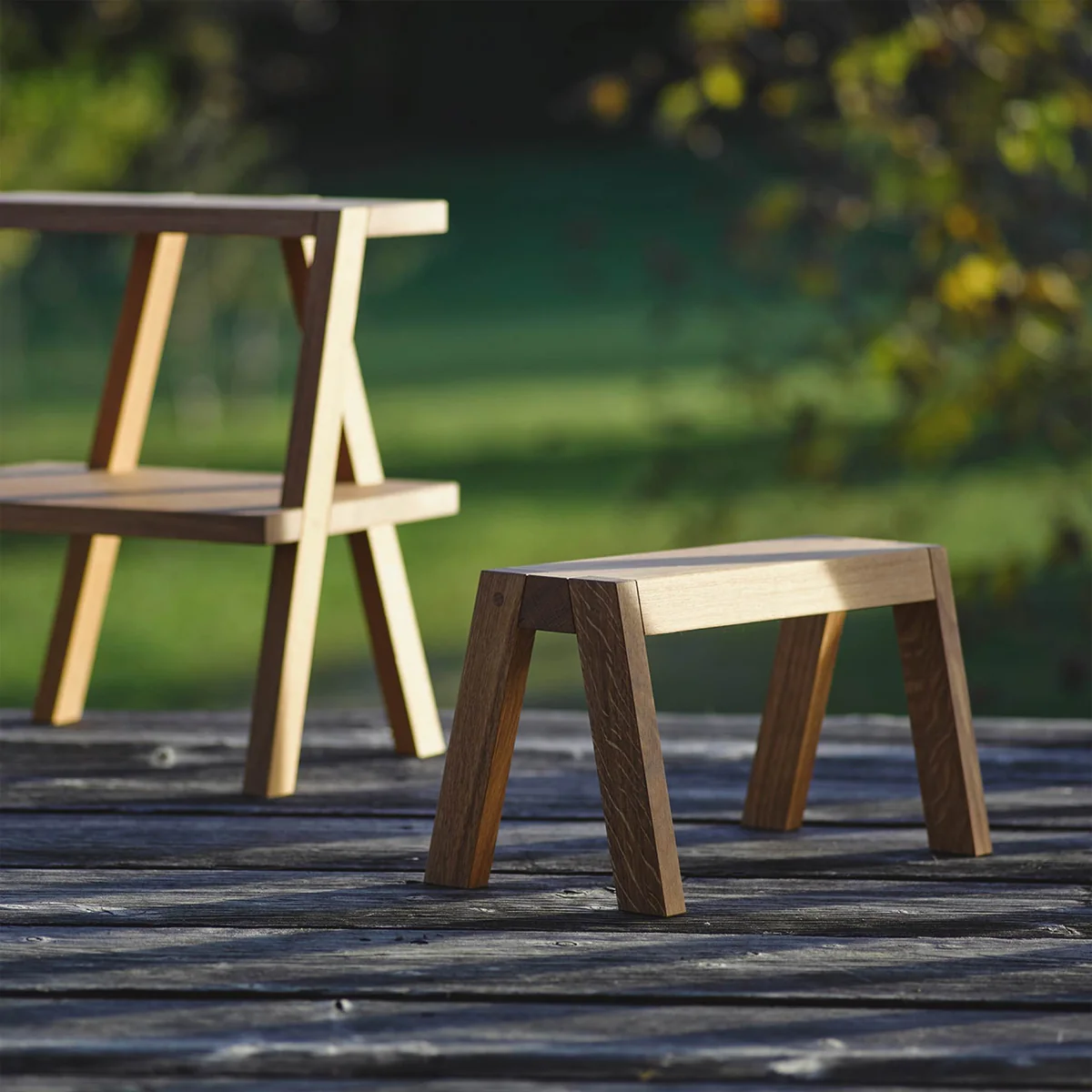Gerry Kellermann designed the "little brother", which does not only perfectly harmonize with its model, but also looks good in combination with other furniture pieces. Coming in oiled oak, the stool by Auerberg is suited to be used for example as a side table, classic step or night stand.