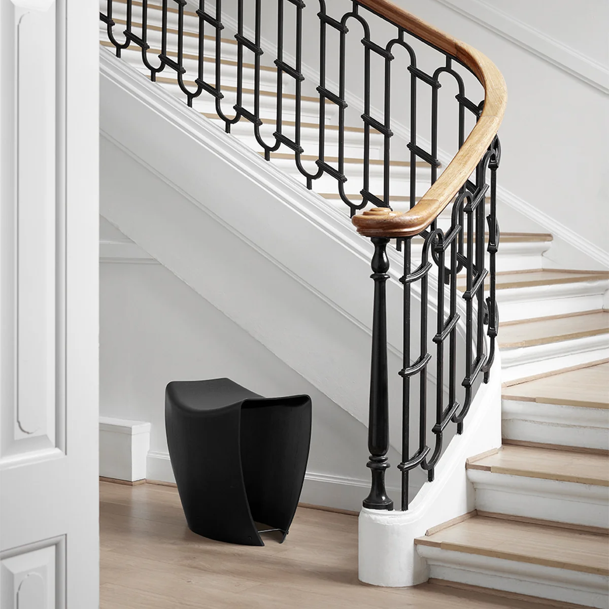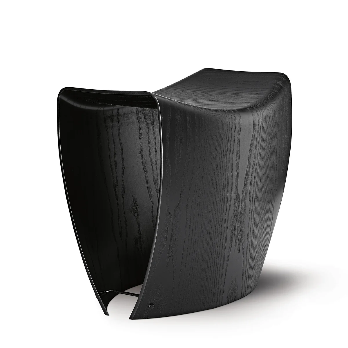 The minimalist and simple design is preceded by an elaborate and innovative process which makes it possible to form wood veneer in several dimensions. The veneer of the Gallery Stool is stretched to its maximum and is still very strong and durable. The result is a fragile-looking stool with a truly surprising amount of stability.