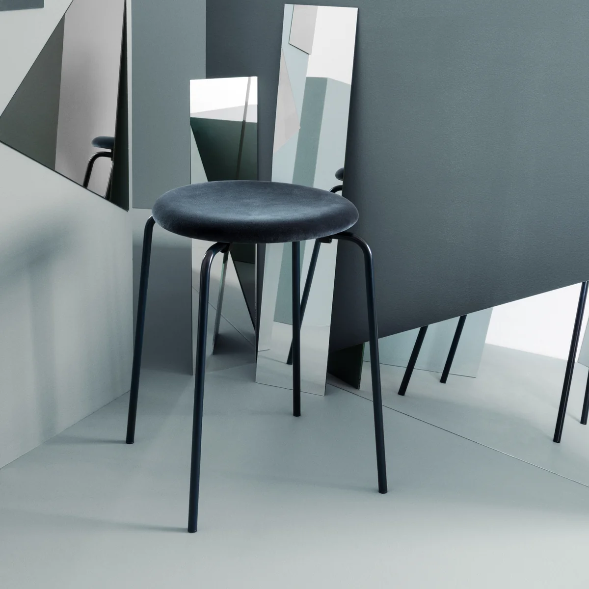 The simple stool with legs in chrome or graphite impresses with seats in different materials. With its understated look and practical stackability, the Fritz Hansen stool is a welcome guest in the living area that can be easily stored away when needed.