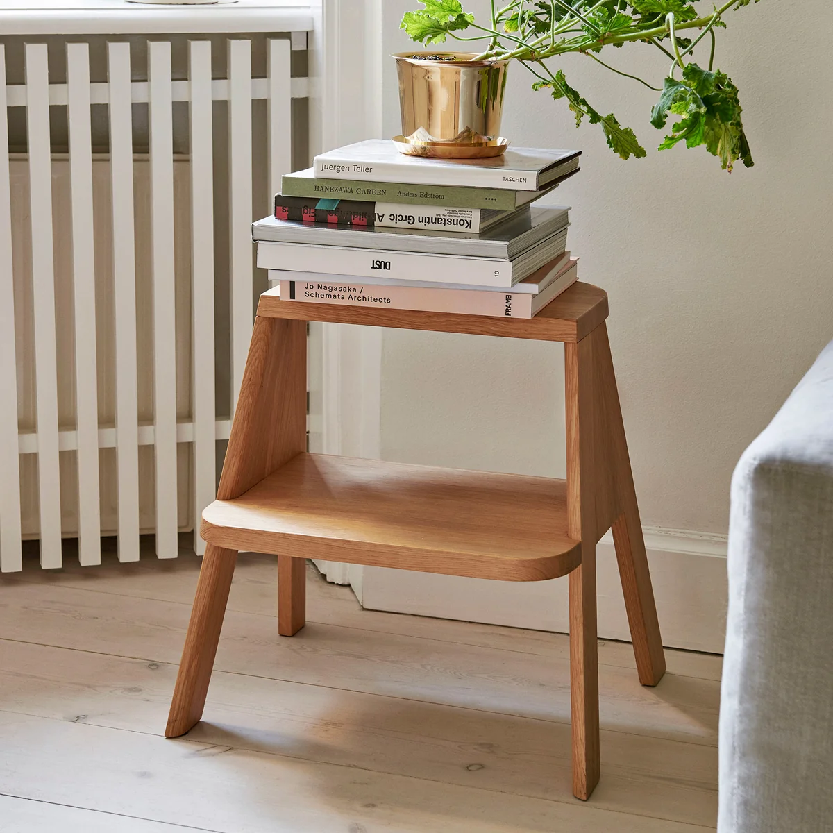 Manufactured from solid, oiled oak, the Butler longevity and naturalness. The oiled surface emphasizes the warm grain and provides an elegant feel. Whether as a stepladder, side table or bedside table - the Butler is versatile and blends effortlessly into modern living environments.
