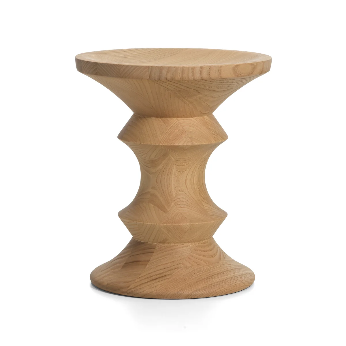 The turned stools can also be used as side tables if desired. The Eames stool was created in the year 1960. At that time, the Eames office was given the assignment of furnishing three lobbies in the Rockefeller Center in New York City by Time Inc. Aside from the whole interior work, comfortable lobby chairs and this series of solid walnut stools, produced by Vitra nowadays, were created in the scope of the project.