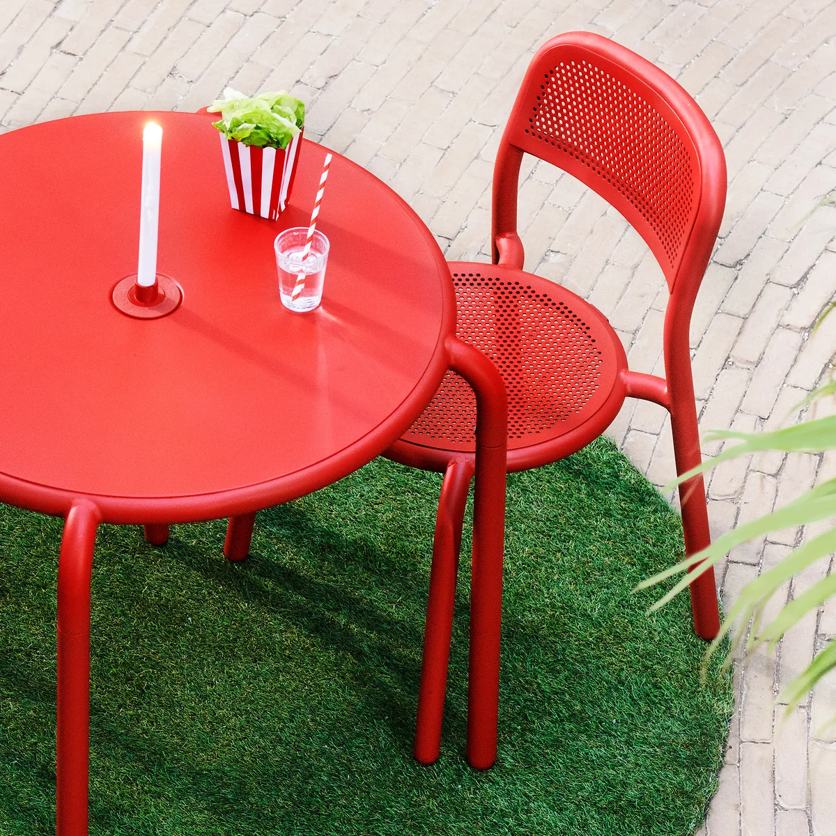 The round Toní Bistreau table from Fatboy is an ideal companion on the patio, on the balcony, in the garden or even indoors. The practical inlet (41 mm) offers the option of fitting the matching Fatboy - Stripesol parasol. So you can enjoy your meal comfortably in the shade. But the Fatboy Bistreau table is also an eye-catcher without a parasol. In this case, the practical parasol inlet can simply be closed with the stopper or stylishly showcased with the decorative candle holder.