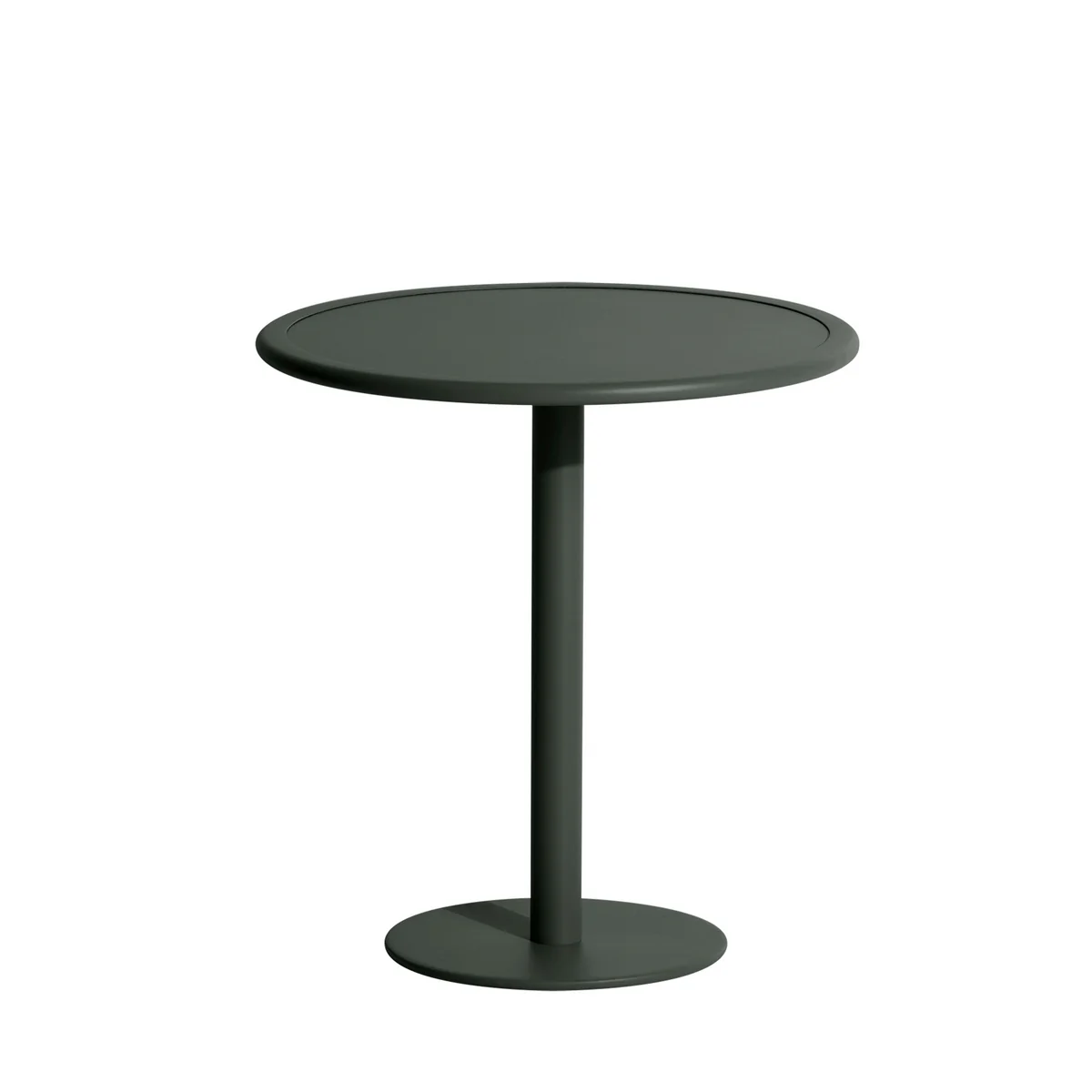 The Week-End bistro table Outdoor from Petite Friture has the look of a classic bistro table, but has been designed with even more practicality in mind. Made from aluminum, it is finished with a UV-resistant epoxy coating that resists both water and fading UV rays. In addition, the round table has a slight edge on the table top so that glasses and plates cannot slide off.