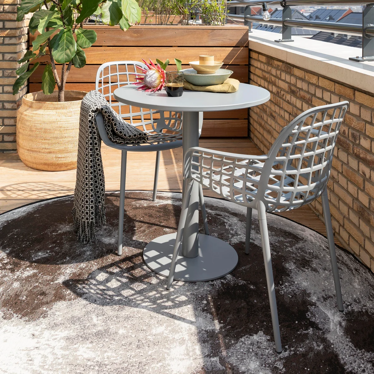 The Metsu bistro table is available in several colors - including black, white and a soft green - and can be perfectly combined with various outdoor chairs, such as the Albert Kuip Garden Chairs from Zuiver . With a load capacity of up to 60 kg, it is sturdy enough for everyday use.