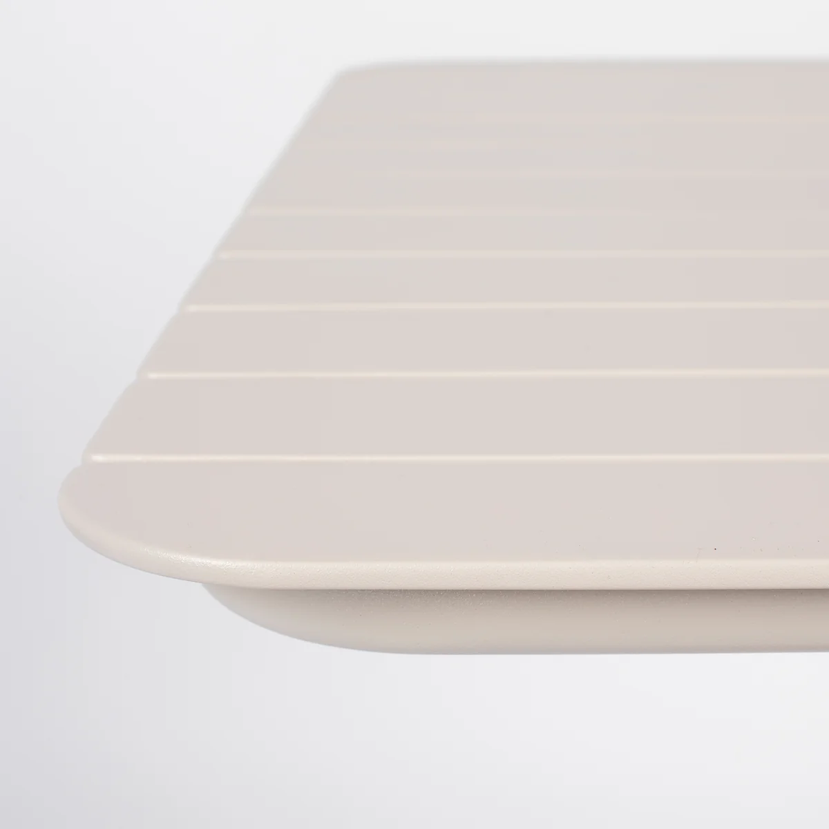 The clear lines and sophisticated design are the result of a collaboration between the Dutch label Zuiver and the renowned Studio APE. Attention was paid to every detail: The slightly inclined table legs ensure a high level of stability, while the fine recesses in the table top ensure that rainwater can run off easily.