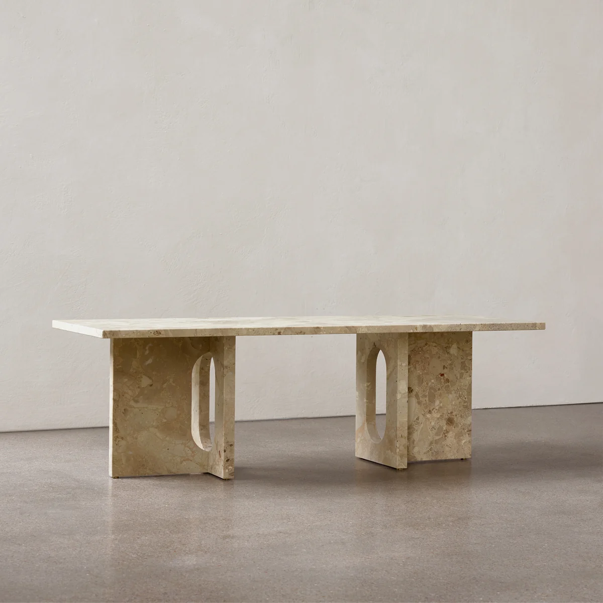 The Androgyne Lounge Table from Audo fits perfectly into any lounge area and provides a real eye-catcher in the ambience. Made of Kunis Breccia stone, the table gets a natural appearance due to the grain and yet looks characteristic due to its distinctive shape. The combination of round and straight shapes makes table a stylish piece of furniture with a strong expression. Elegant and powerful, masculine and feminine in equal measure - the essence of the table is its duality.