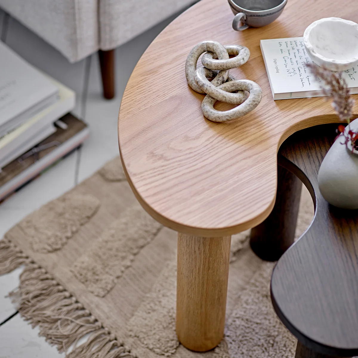 The Luppa coffee table from Bloomingville is characterized by its unconventional and modern look, which is confessed in any interior. The organic shape is calm and abstract at the same time, so the table can be combined in many ways and thus unfolds its aesthetics in the most diverse ways. With light-colored furniture, the high-quality wood comes into its own particularly beautifully and gives the interior a homely ambience.