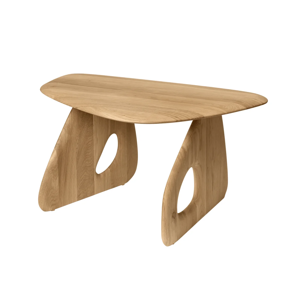 The Oar coffee table from Ferm Living combines elegance with sophisticated design. With gentle, flowing curves and an original recess in the legs, the table is a real eye-catcher. Made from FSC®-certified solid oak with a naturally oiled finish, it is complemented by the brass legs, which not only add sophistication but also provide stability on different surfaces.