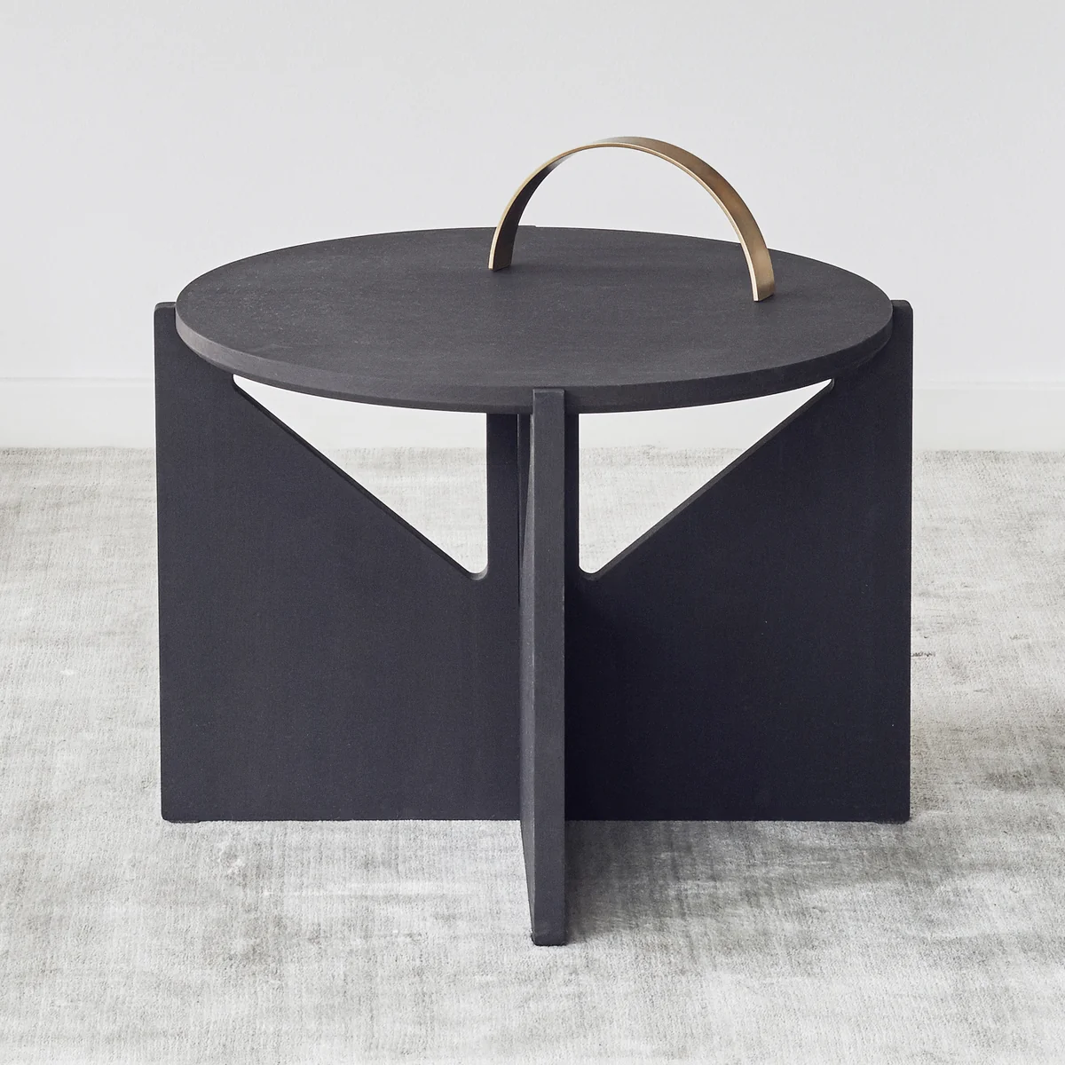 To match the coffee table, Kristina Dam offers a stool of the same design, but which is taller and narrower and can therefore serve as a modern stool or elevated side table.