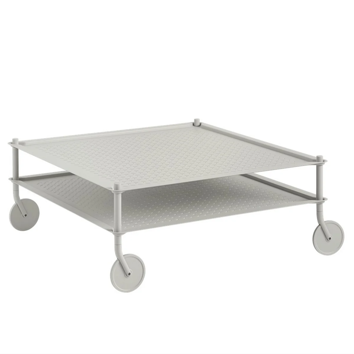 The Flow coffee table from Muuto is a functional side table that combines modern design with practical flexibility. The grooved shelf in embossed matt steel gives it a contemporary look, while the practical castors allow the table to be moved effortlessly from room to room. The Flow side trolley is versatile and adapts flexibly to your needs - whether as a crockery trolley in the dining room, a bookcase in the living room or for storing boxes and cartons. Made of powder-coated steel, the Flow coffee table is available in various colors and blends stylishly into any interior.