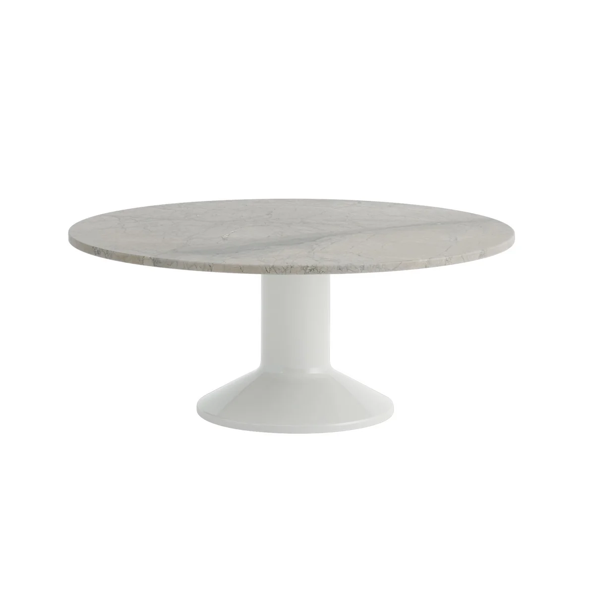 The Midst coffee table from Muuto appears like a calming focal point in the room: its round frame catches the light and gives it a gentle spiral movement, while the solid marble top above it looks like a calm celestial body. The natural stone tones reveal new, subtle details every time you look at it.
