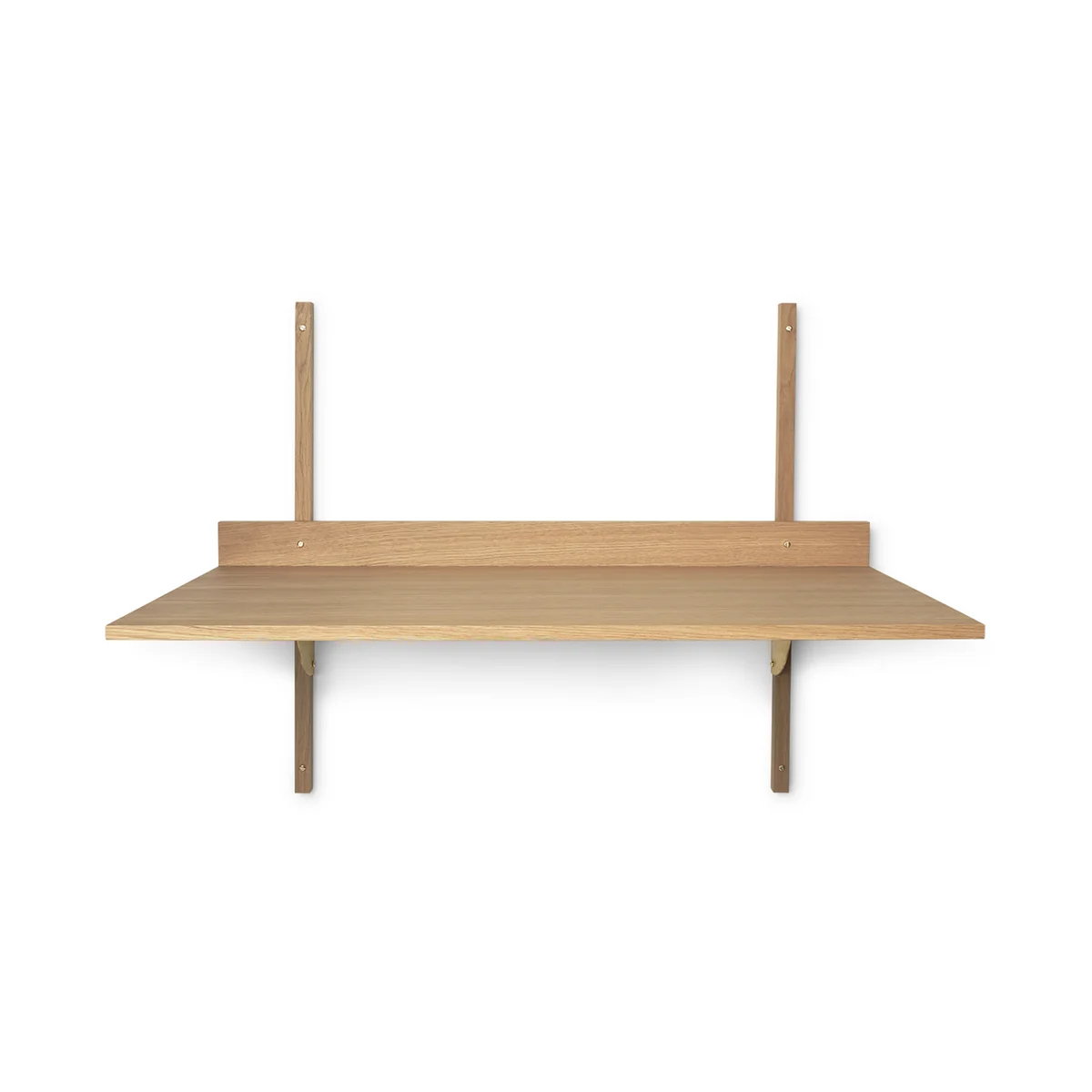 The Sector Desk from Ferm Living is characterised by its robust simplicity and the classic combination of wood and brass. It can be used as an independent surface or combined with the Sector Wall shelves can be combined in any way to create an integrated and coherent work area. A short edge at the end of the table forms a small, narrow surface that is ideal for handwritten notes or a favourite photo.